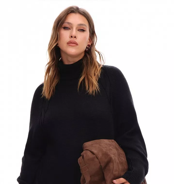 Черное платье гольф с вязкой коса