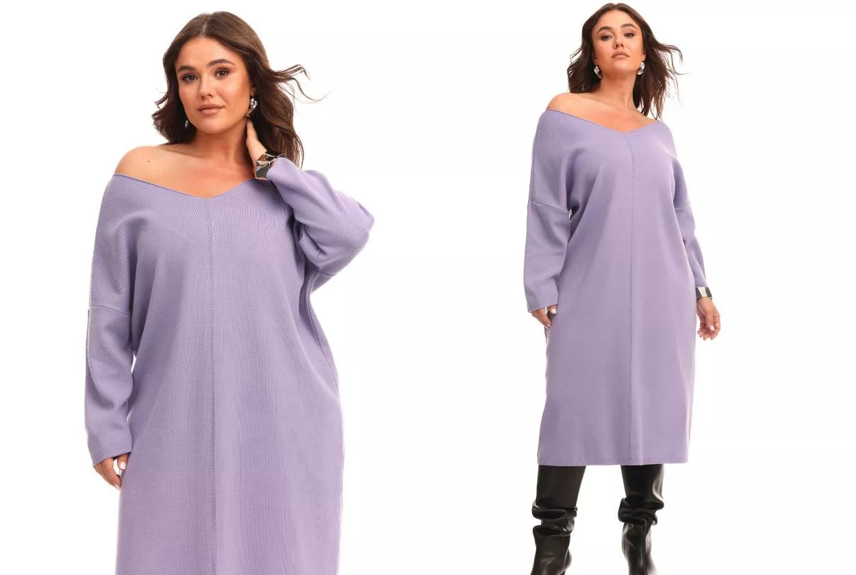 Сиреневое платье свитер оверсайз из вязаной шерсти с кашемиром