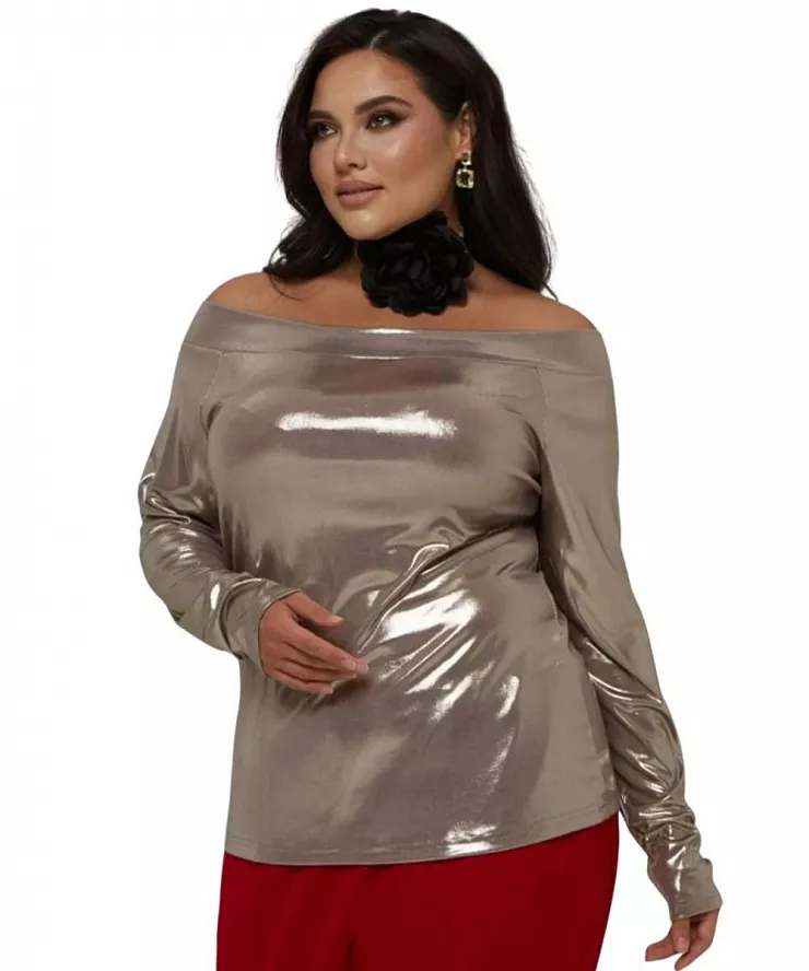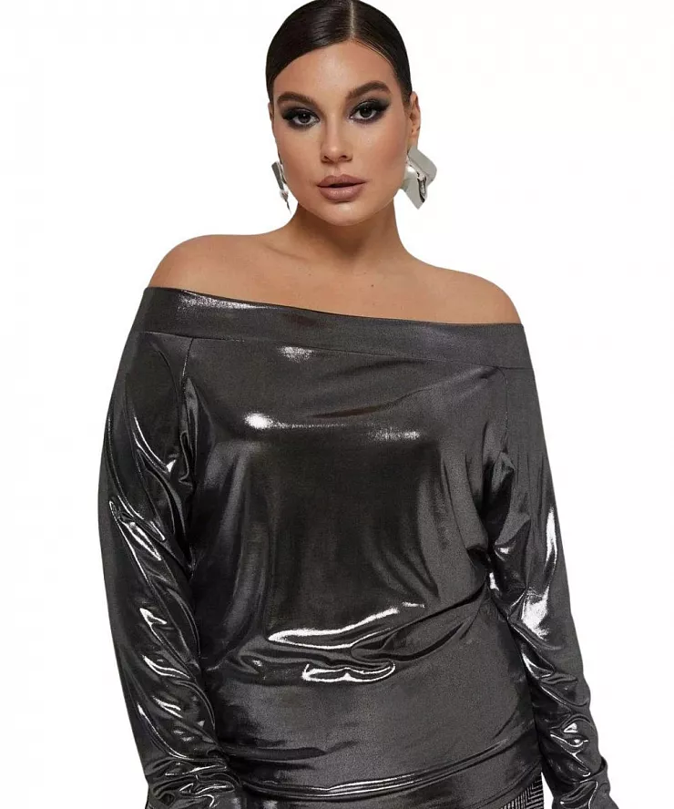 Лонгслив с вырезом лодочка с металлизированным эффектом