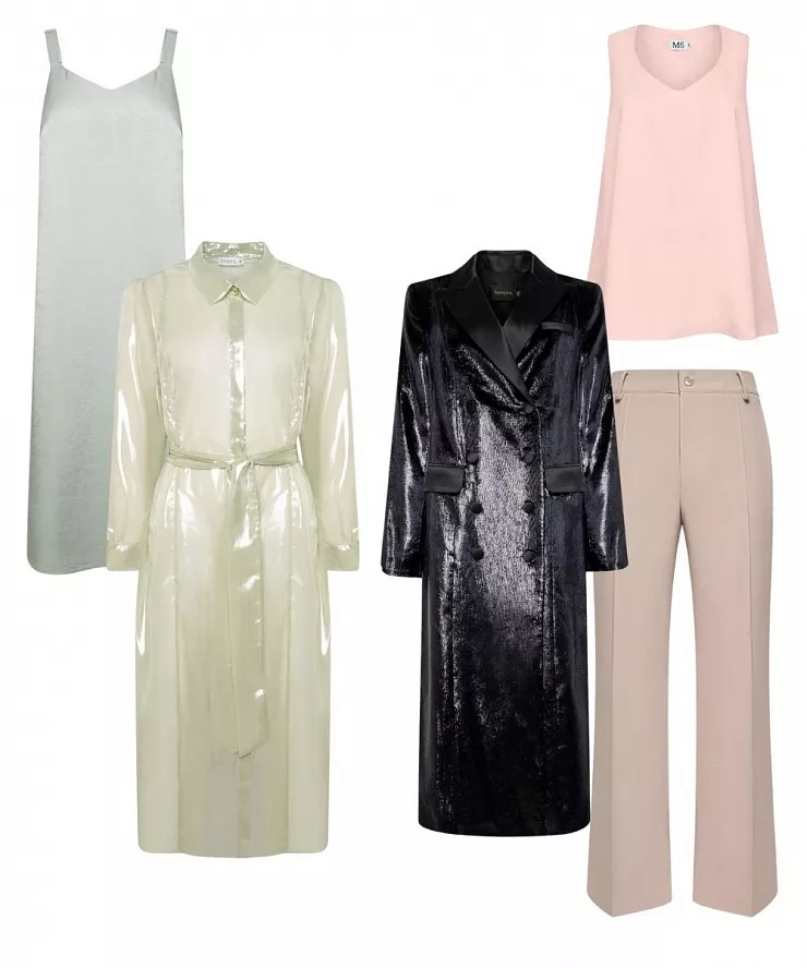 - Серебро, золото и металлик. Горячие оттенки сезона. Серебристая юбка, костюм, золотой топ или даже просто сумочка-кошелек добавят футуризма и блеска.