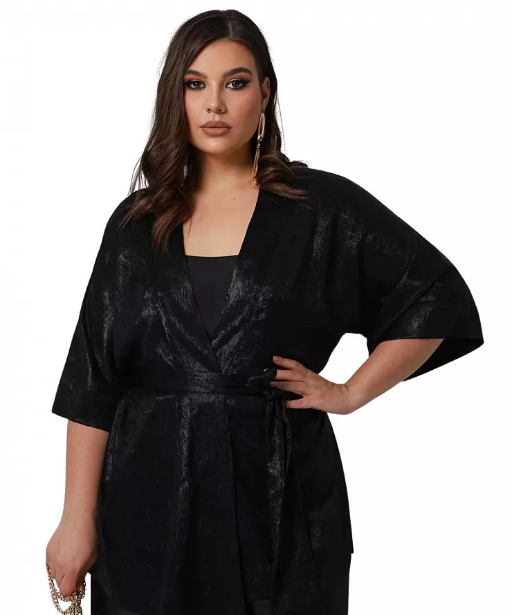 Блуза кимоно из поливискозы с эффектом жатки