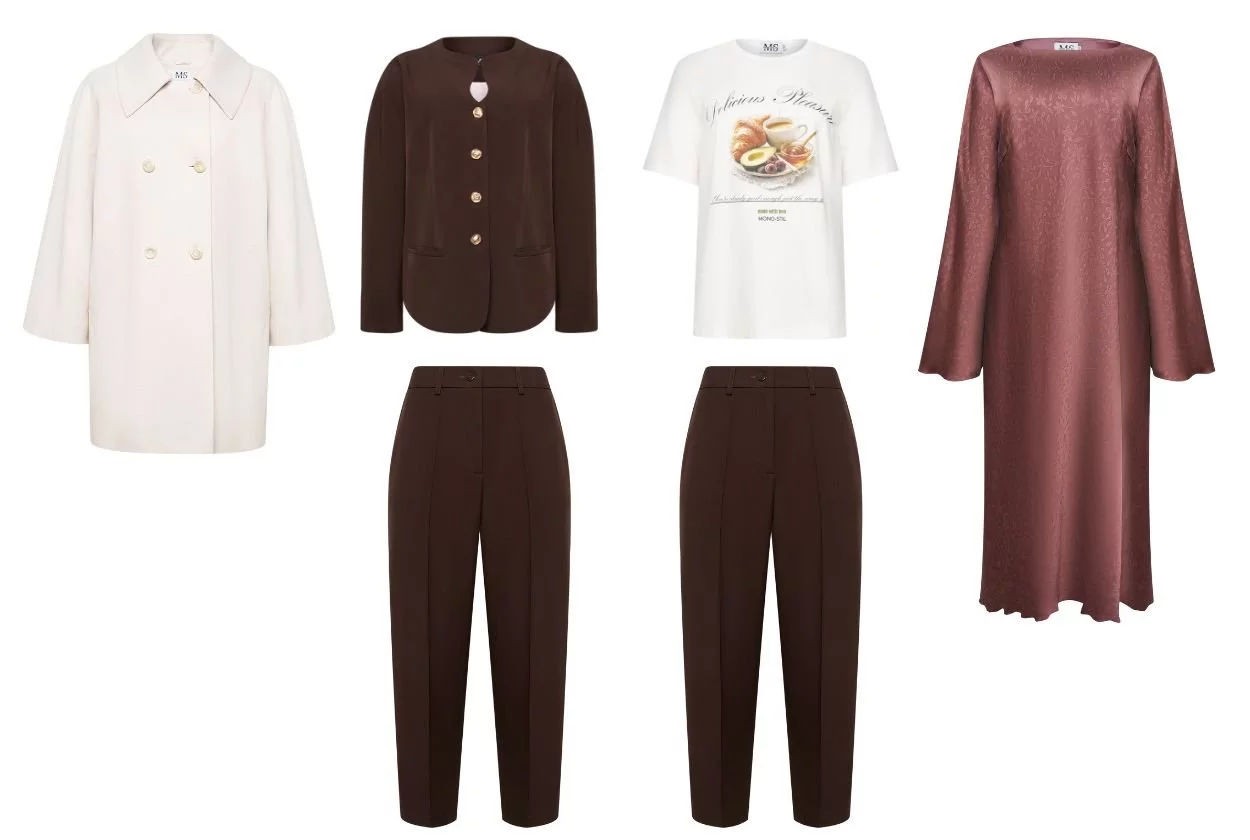 - Миксовать близкие по палитре вещи, точечно добавляя тренды или небольшие акценты.