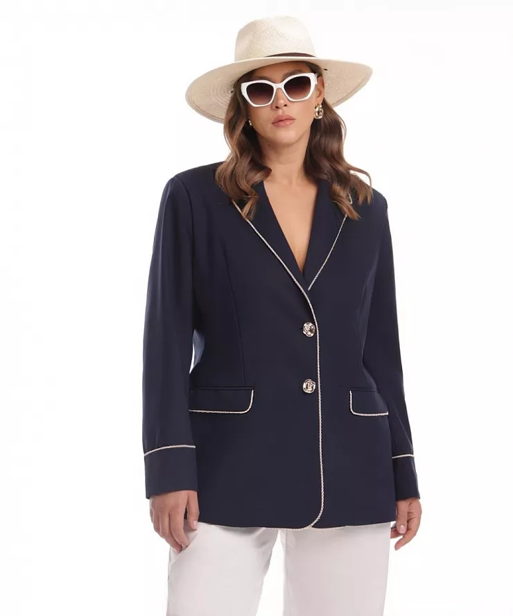 Классное дополнение к любому аутфиту, завершающая ступенька к продуманному трендовому луку. Жакет в базовом молочном или темно-синем цвете пригодится летним вечером, а также станет основополагающей деталью делового образа.