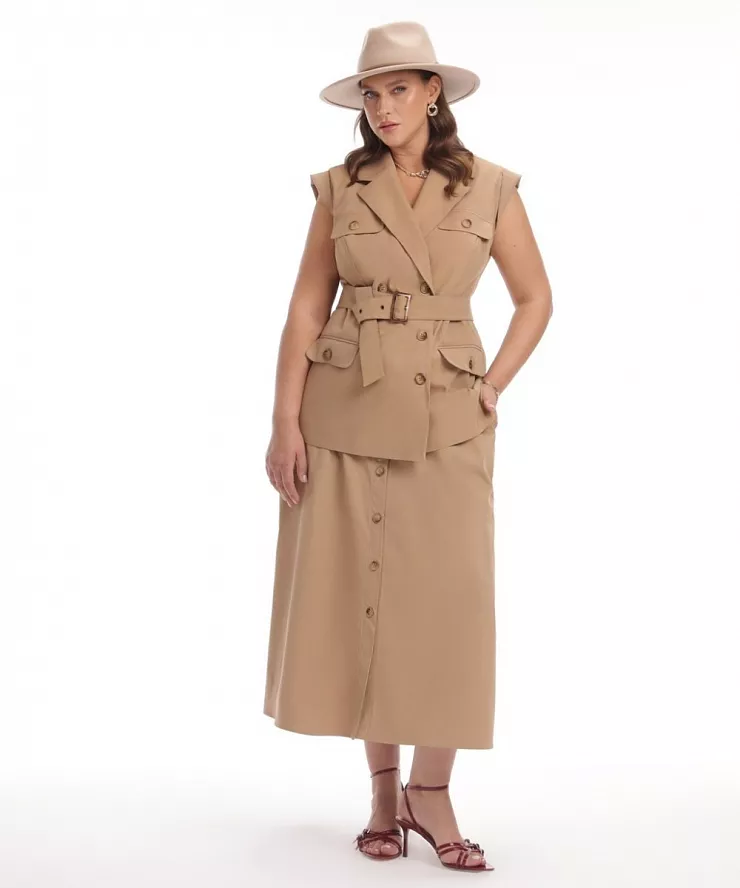 В коллекции, помимо легких тканей, мы использовали те, которые имеют фактуру и прекрасно держат форму. Это актуально для жакетов, некоторых юбок, жилетов. Смесовая вискоза, лен, хлопок выполнили свою работу, подарив вам стильные изделия, которые впишутся в имеющийся гардероб.