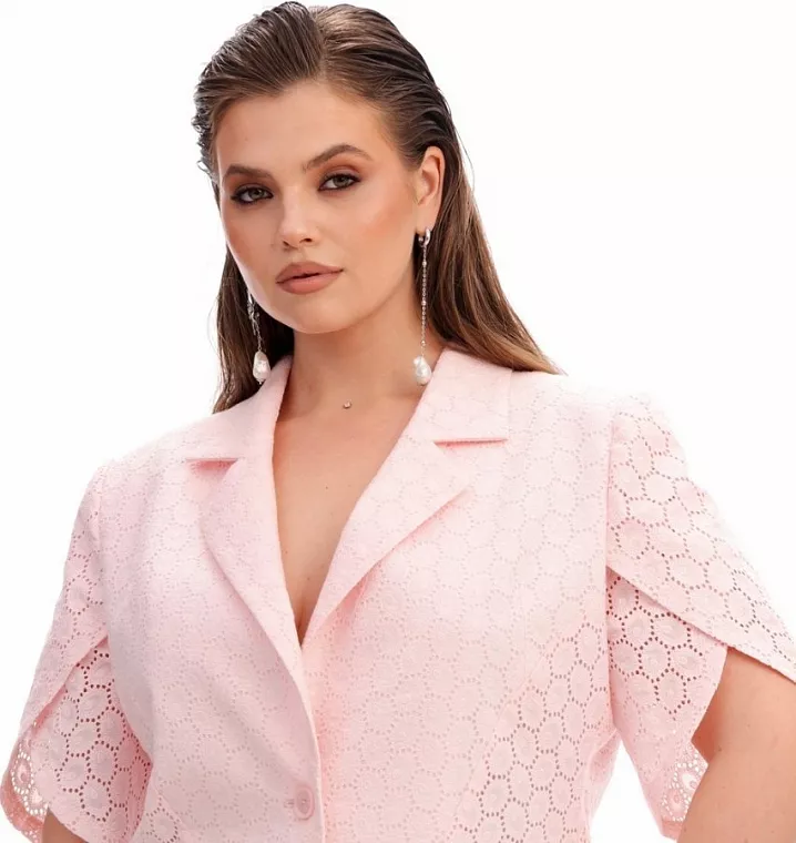 - Треугольное лицо: подчеркните верхнюю часть лица, выбирая воротники с острыми углами. Они помогут сбалансировать широкий подбородок и сужающиеся к низу формы.