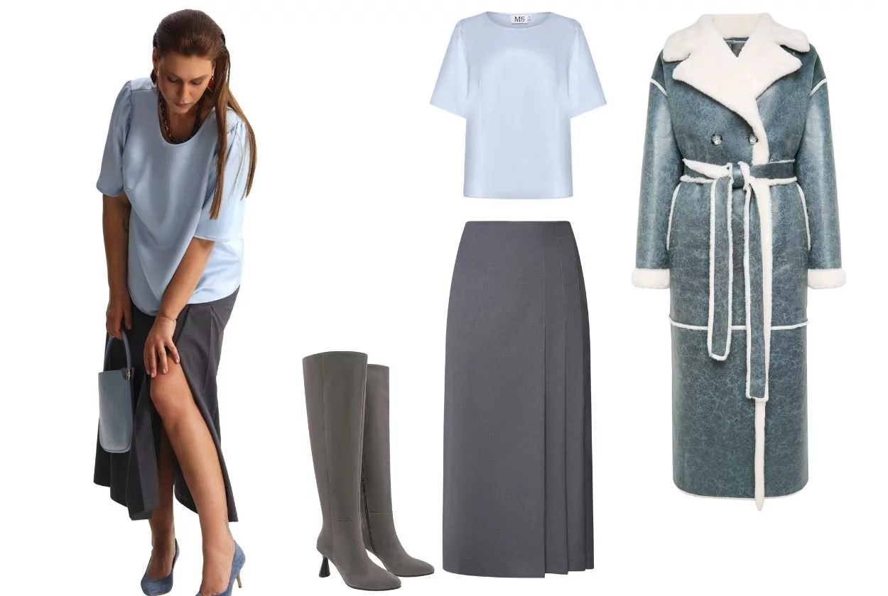 - Верхняя одежда: шерстяное пальто или удлиненная дубленка.