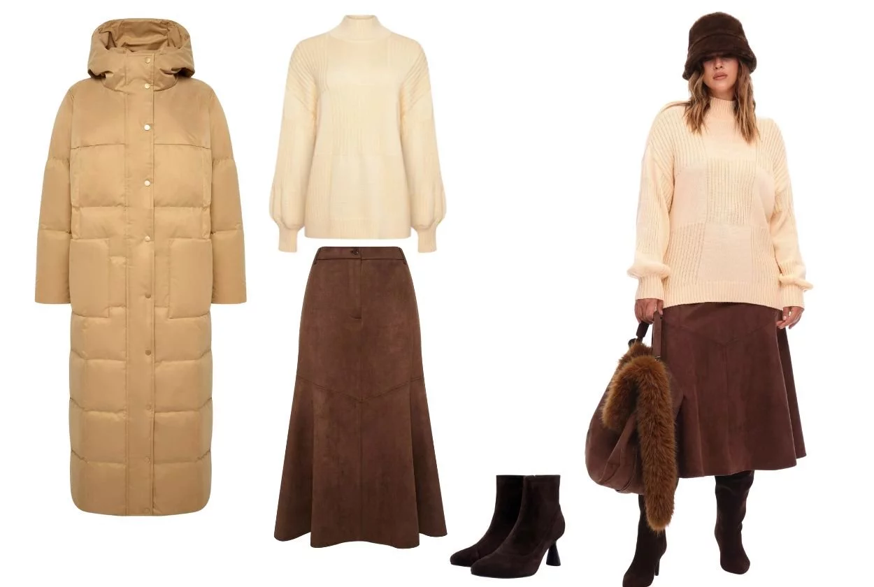 - Верхняя одежда: теплый пуховик или укороченная дубленка с шерстью мериноса.