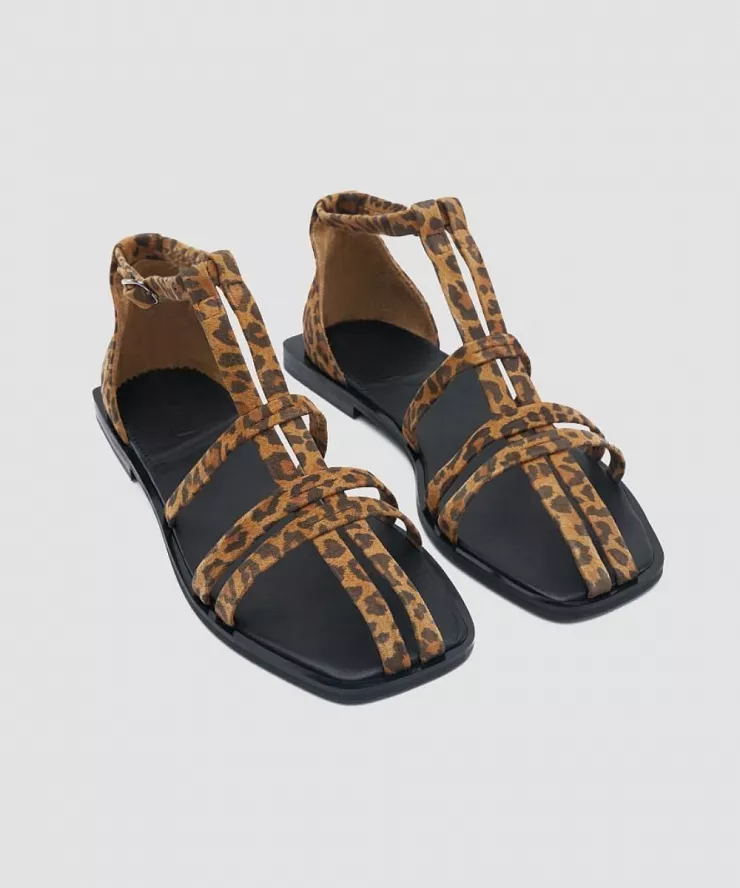 Сандалии из кожи на плоской подошве с принтом леопард