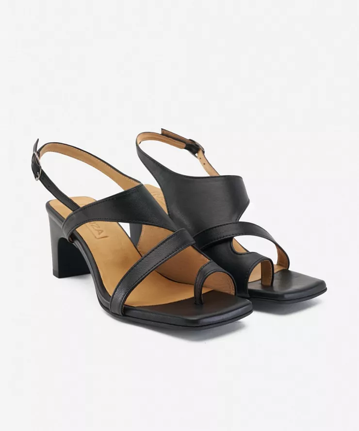 Кожаные босоножки на один палец на устойчивом каблуке