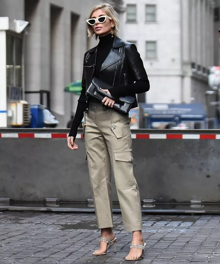 Бомберы пришли к нам от баскетболистов, футболистов и рэперов. Из расслабленного стрит-стайла бомбер можно превратить в элегантный элемент гардероба, если добавить облегающие или расклешенные кожаные брюки.