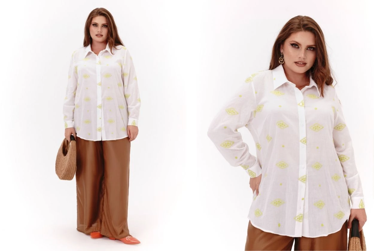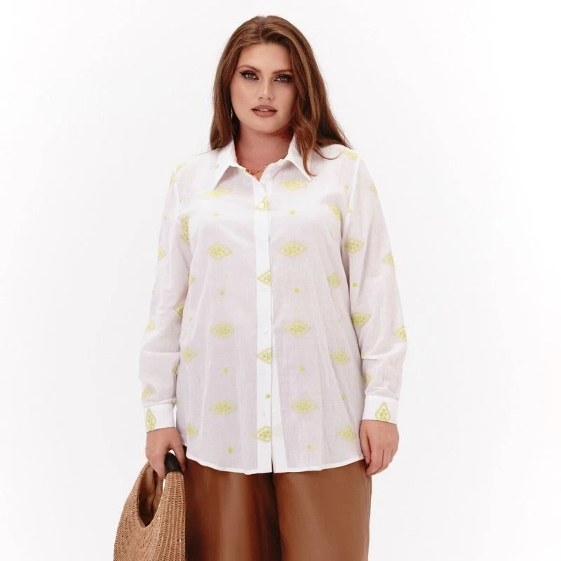 Рубашка в этно-стиле из муслина с салатовой вышивкой