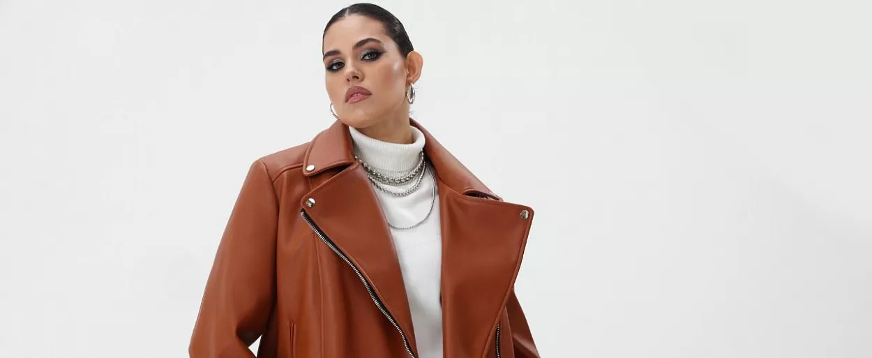 Новинка, которая претендует на bestseller, – косуха в байкерском стиле из мягкой экокожи.