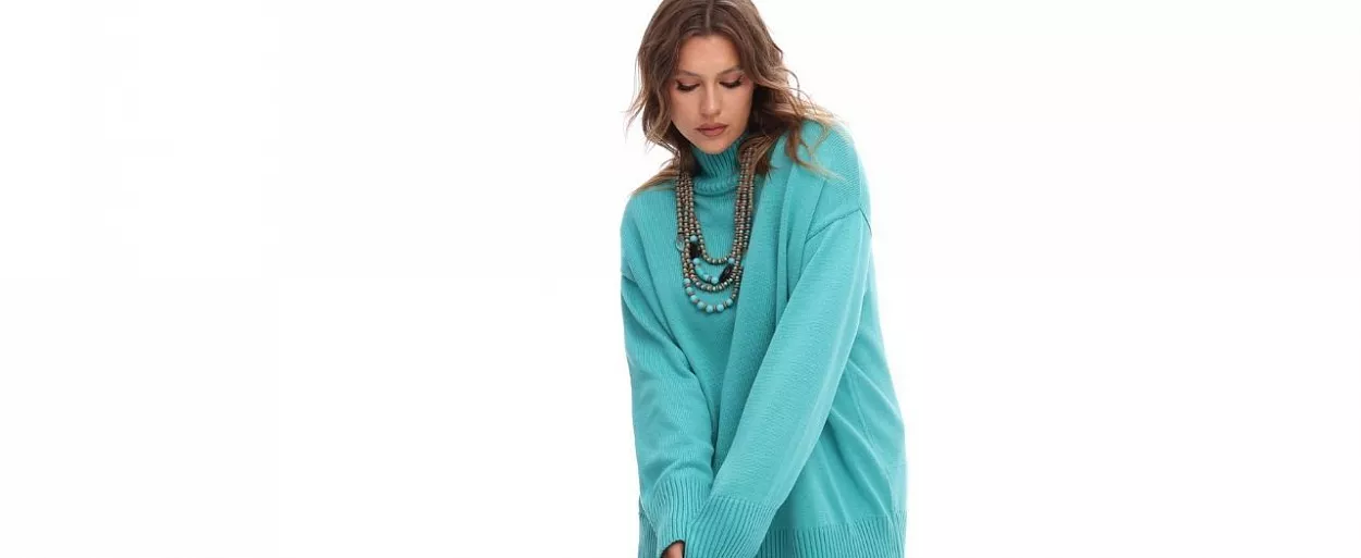 А наш джемпер Солярис бирюзового цвета — нежный, как морская пена,