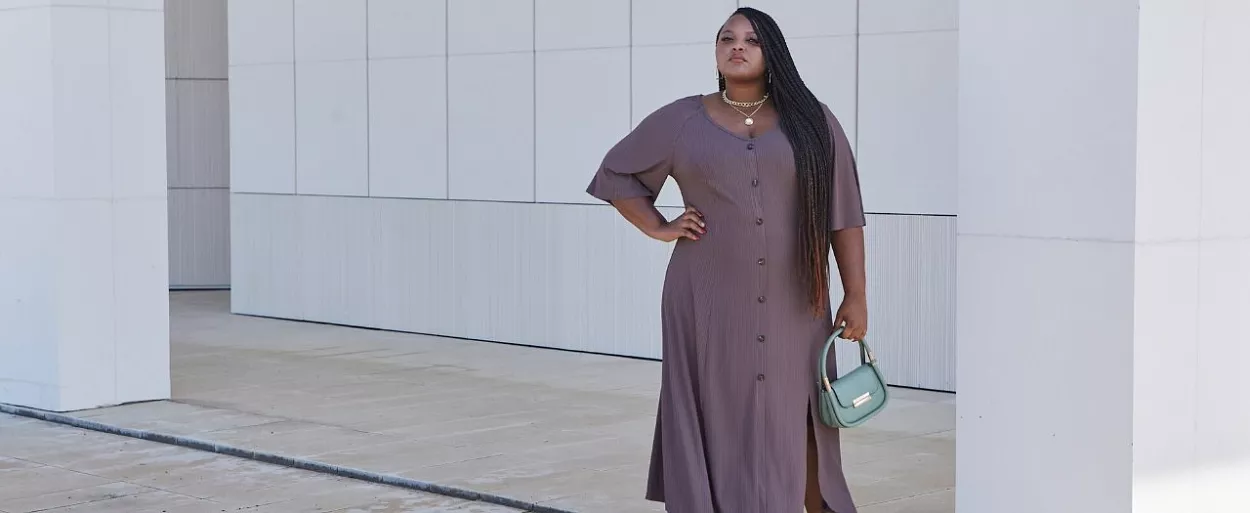 Трикотажное платье в рубчик с пуговицами и разрезами