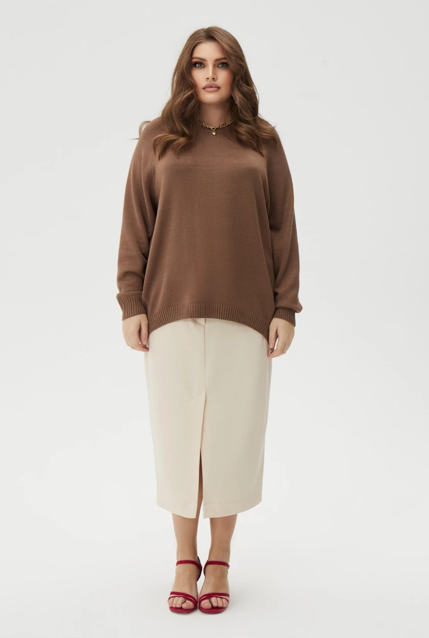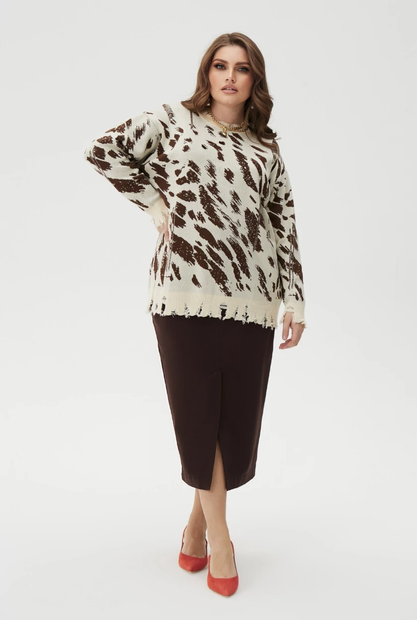 Сочетайте с джемперами, рубашками, жакетами, образуя вертикали, чтобы вытянуть силуэт.