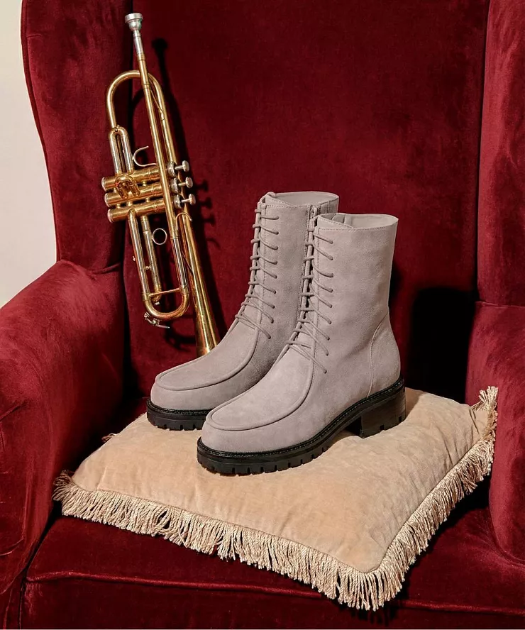 Ботинки на шнуровке и молнии из замши