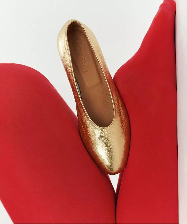 Балетки из золотой кожи
