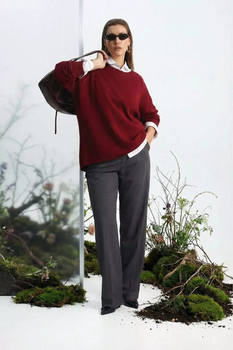 Джемпер дружит с широкими брюками, жилетом или курткой, брюки — участвуют в 5-6 образах с разной подачей.