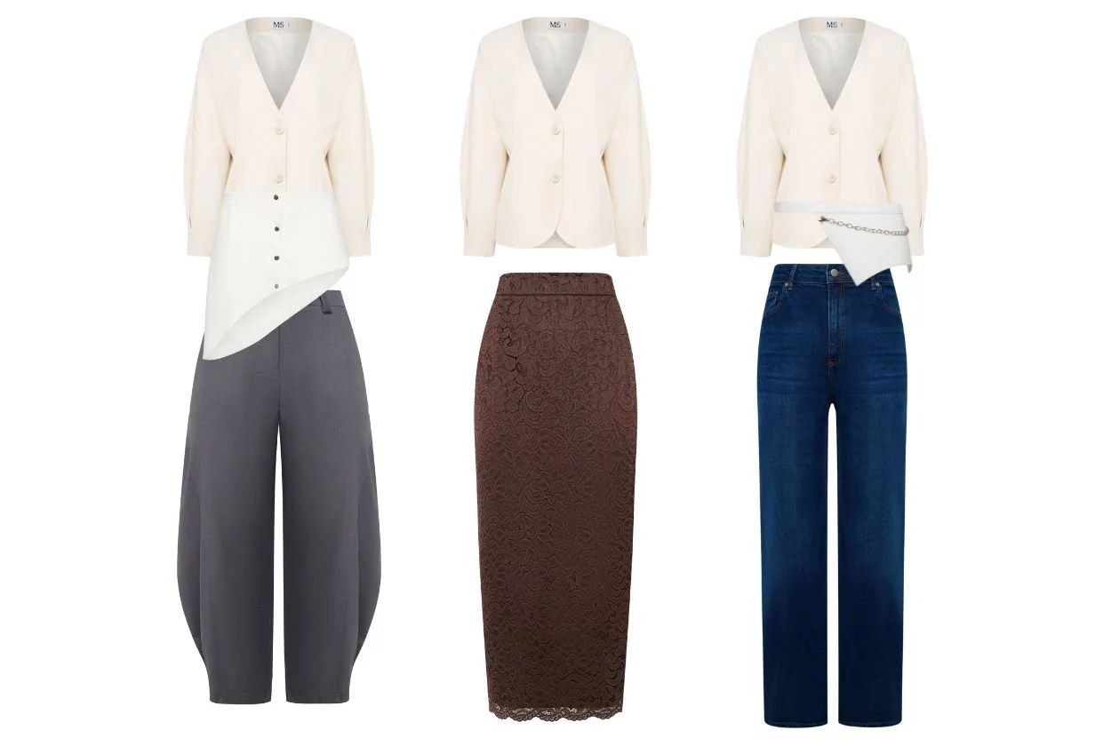 Кстати, если сочетать жакет с джинсами, более свободными юбками
