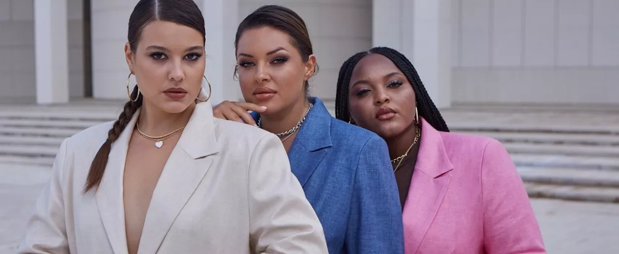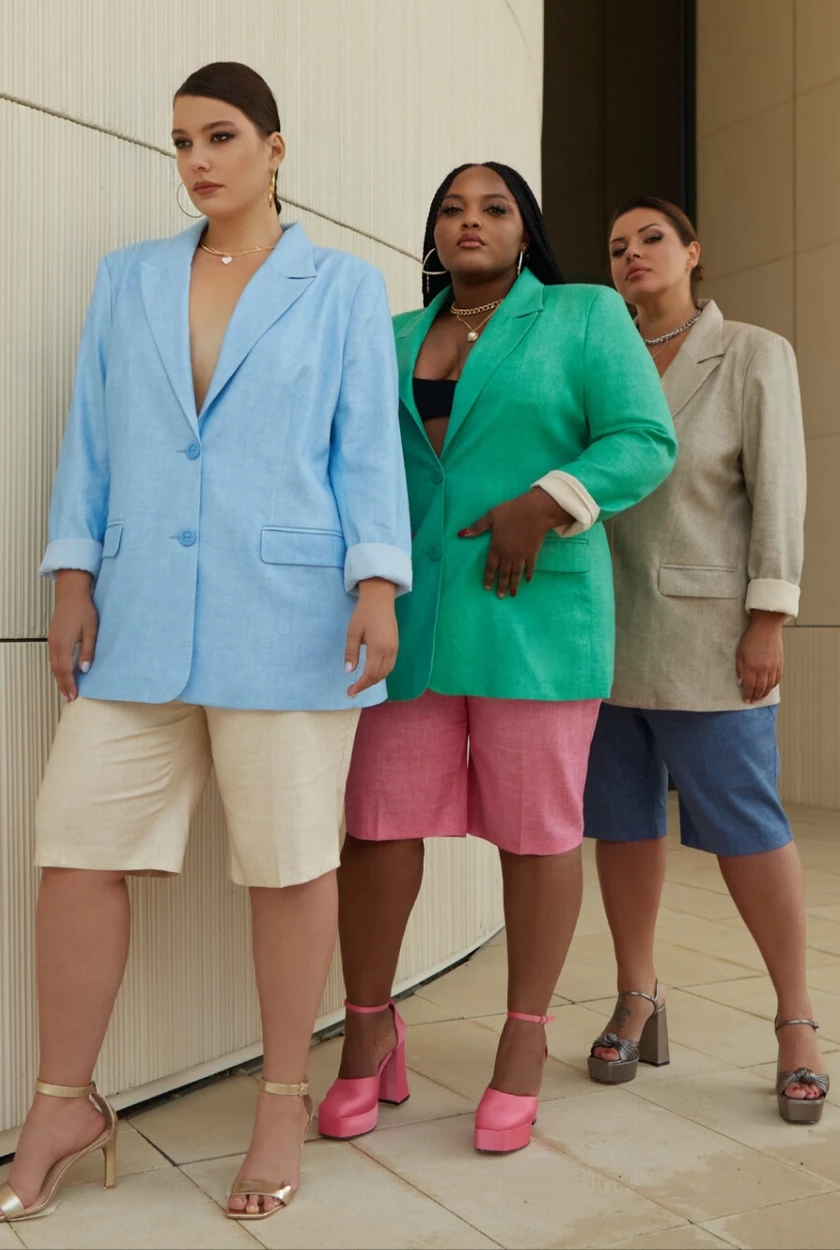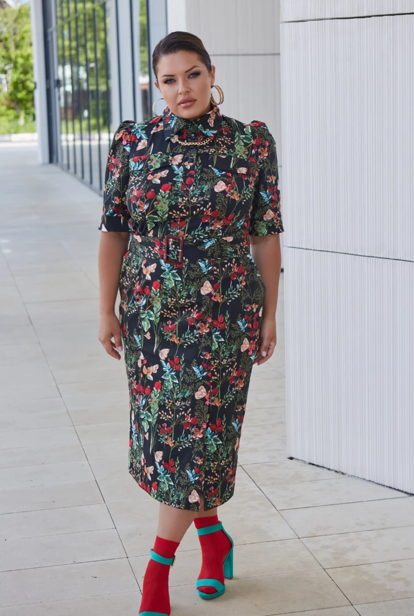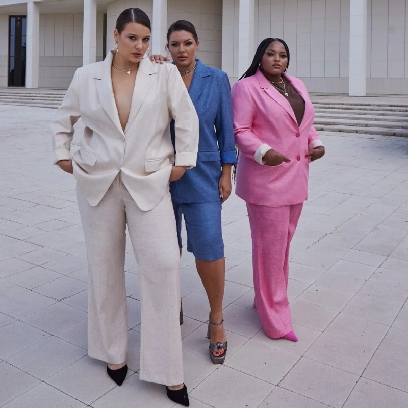 Платья с фигурными вырезами, костюмы с прямыми брюками, шорты-бермуды на высокой посадке в стиле Джулии Робертс созданы для красивых пышных фигур.