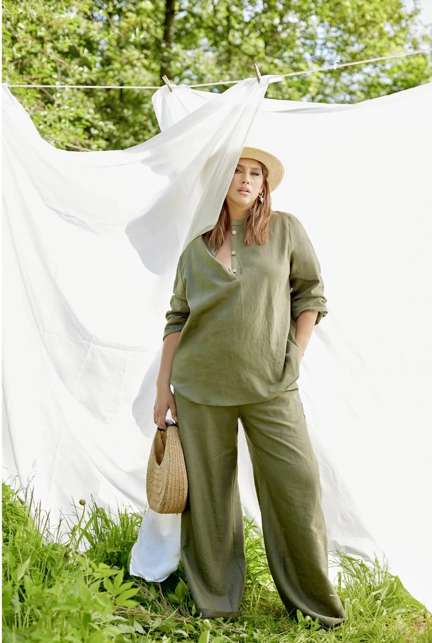 Распашонка из 100% льна в оттенке хаки