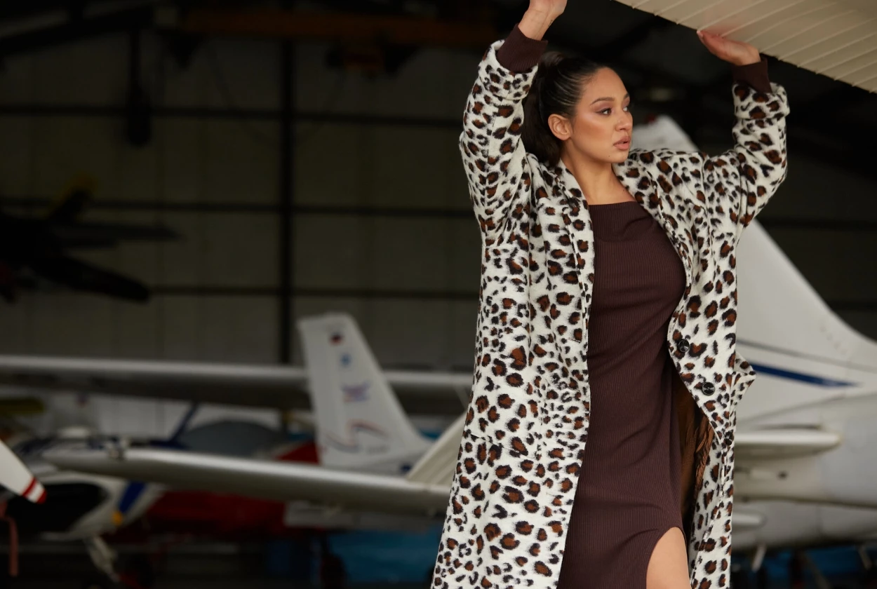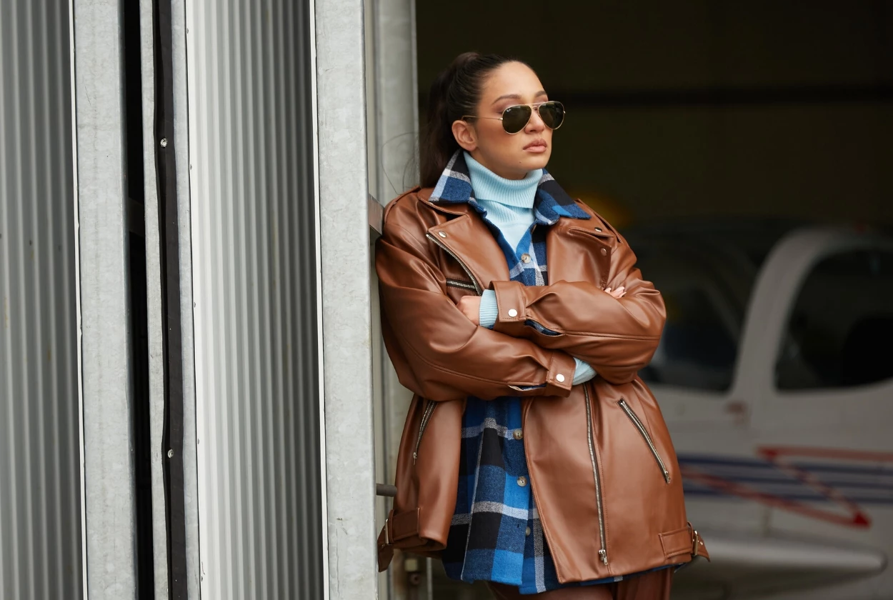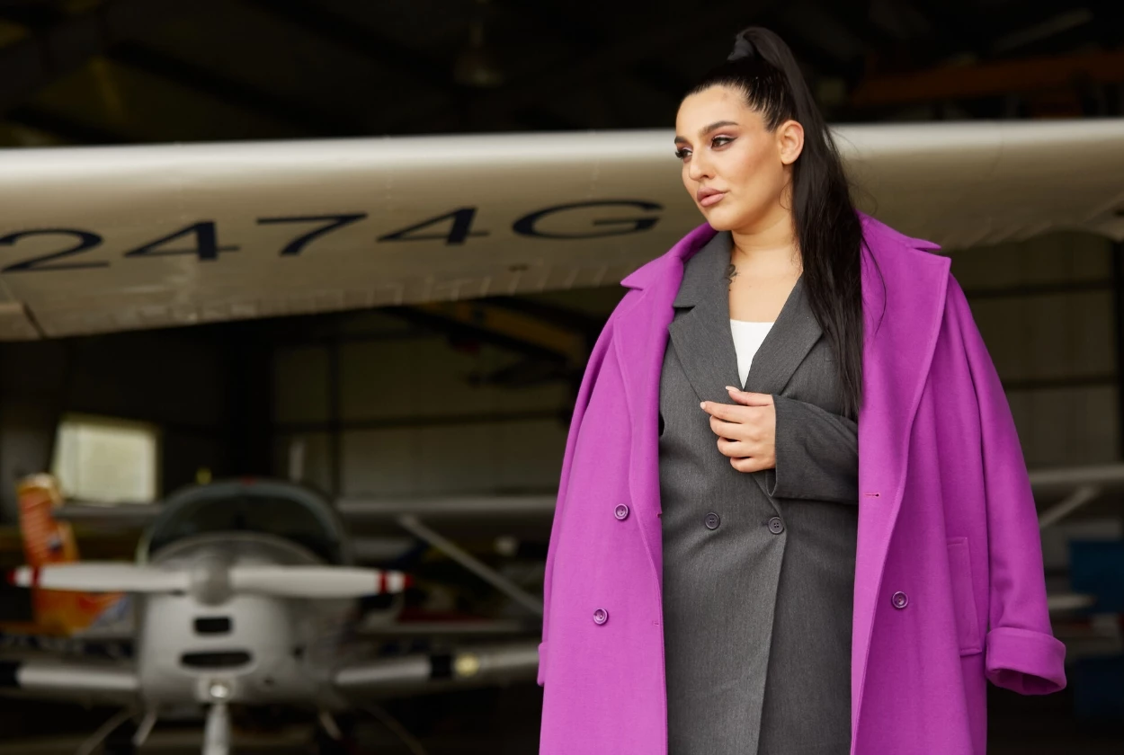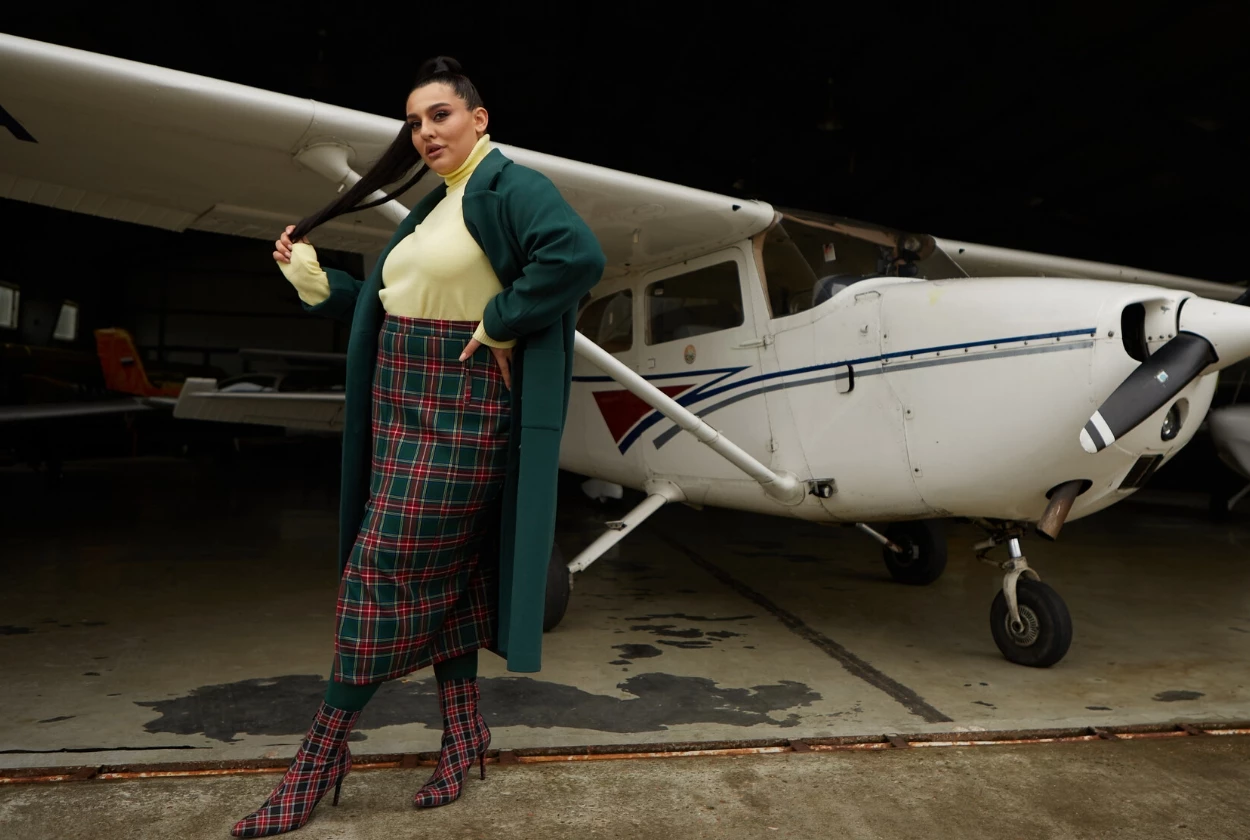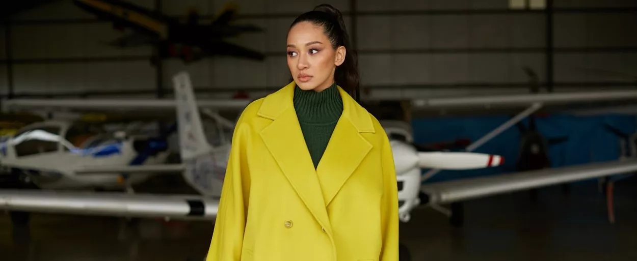 Мы давно думали о съёмке на аэродроме, и, наконец, у нас получилось это сделать. Был пасмурный осенний день. Вся команда работала не покладая рук и, немножко дрожа от холода, изредка тянулась к чашечке горячего кофе, чтобы немного согреться. Вертолёты были прекрасны – атмосфера аэродрома на контрасте подчеркнула уют и женственность наших новых образов.