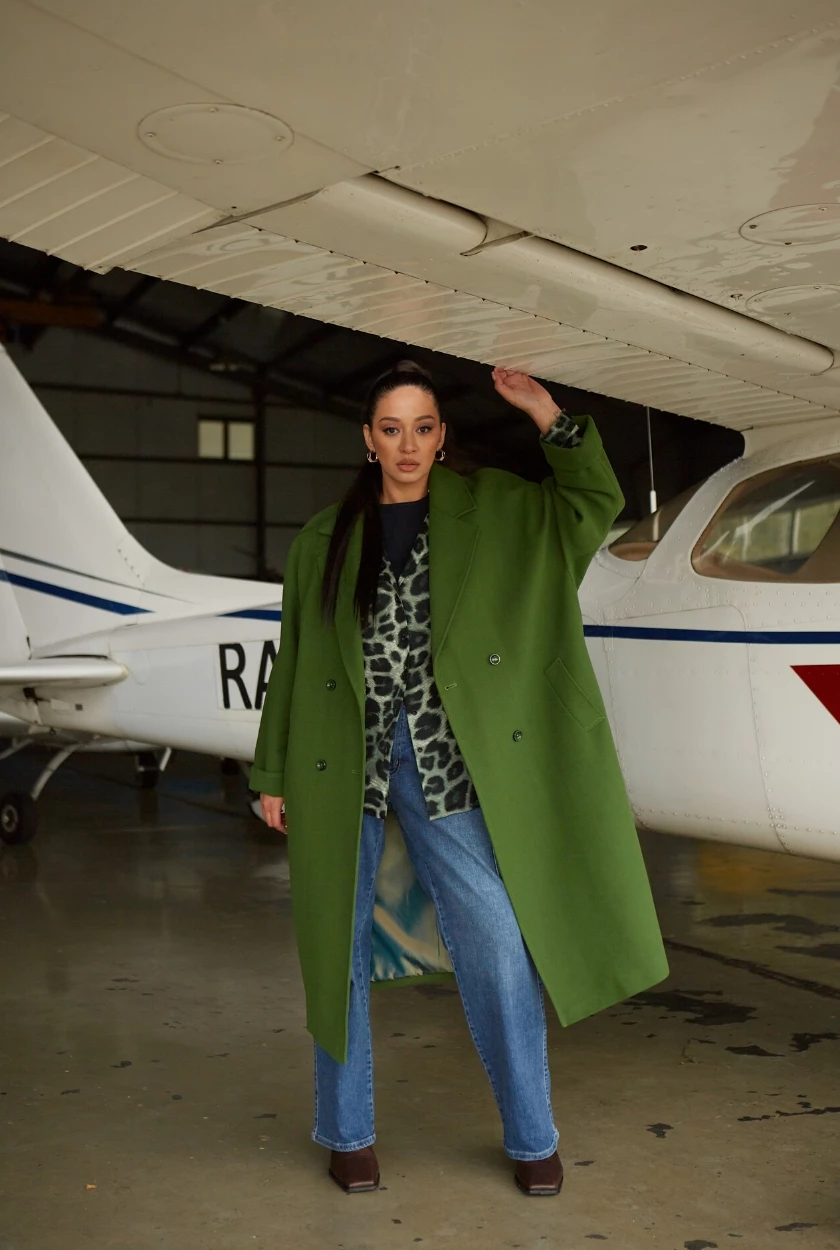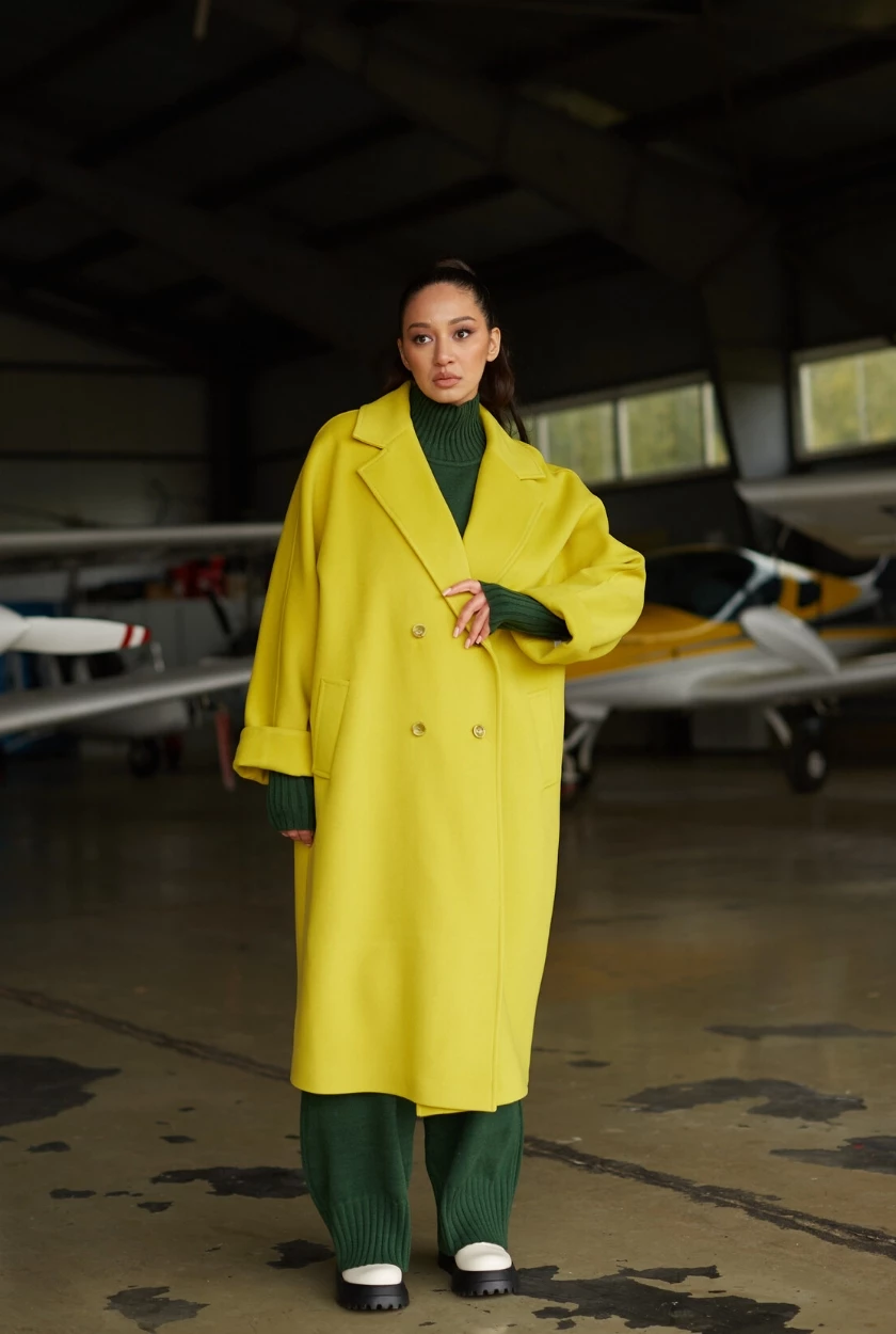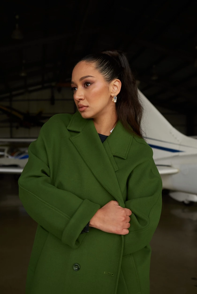 Двубортное пальто из шерсти в мужском стиле оливкового оттенка