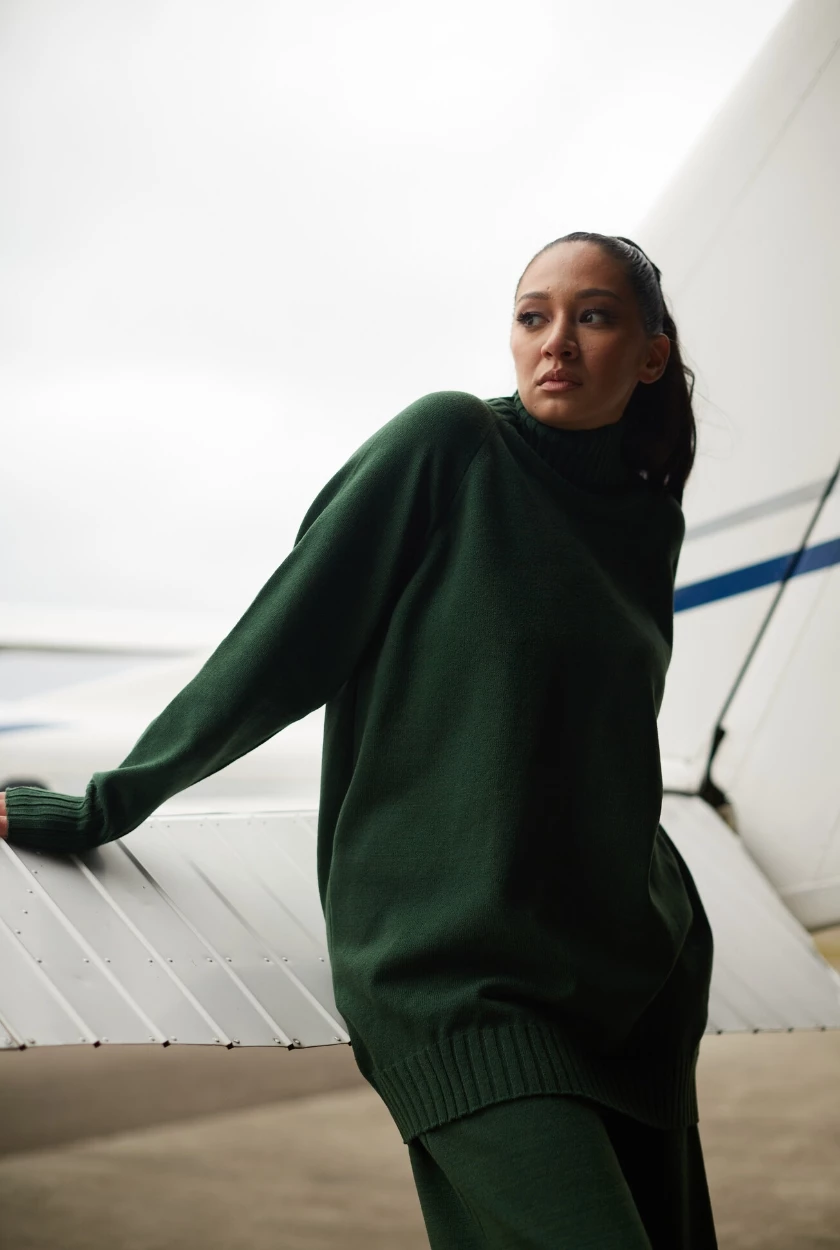 Зеленый костюм с джемпером и брюками с добавлением кашемира