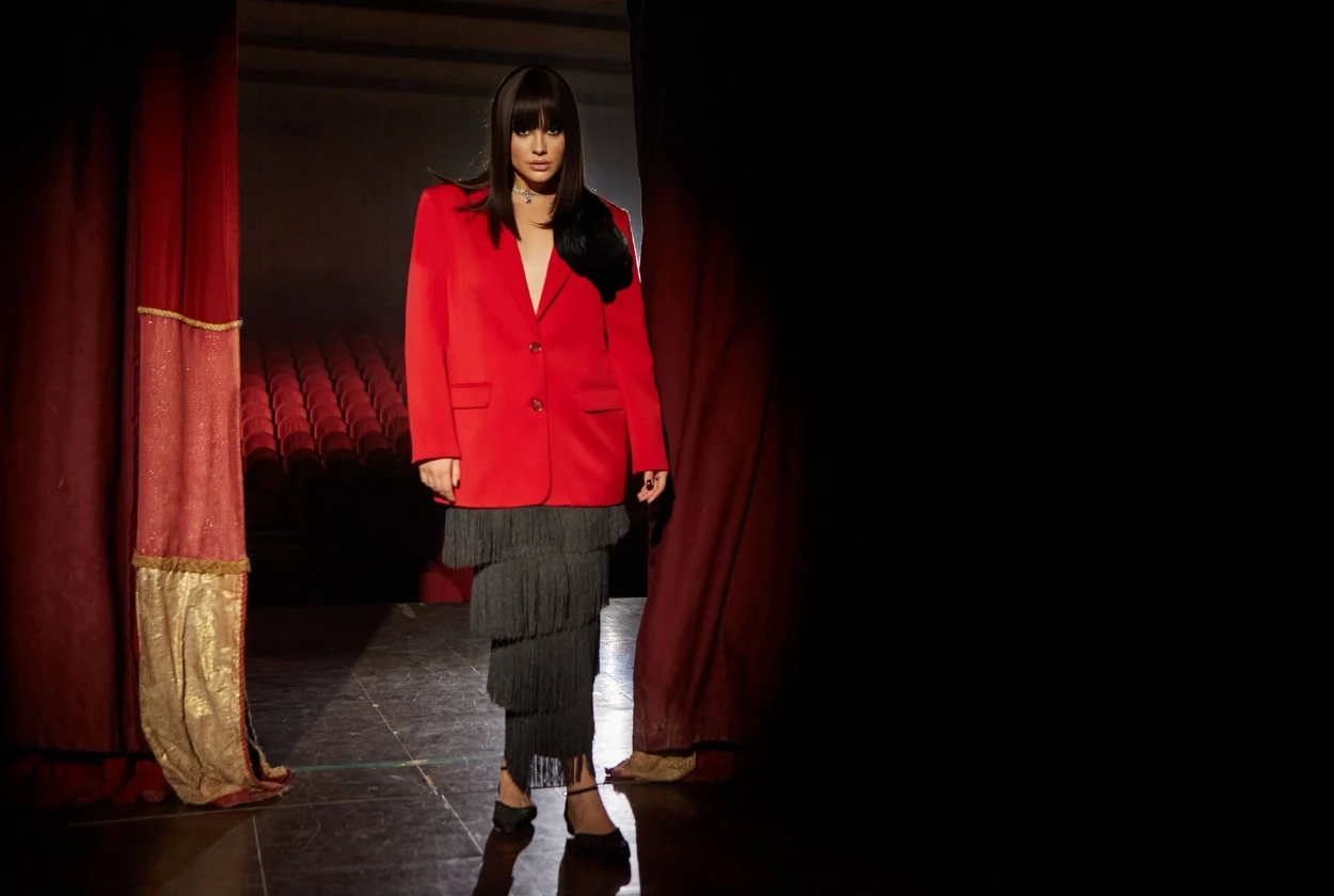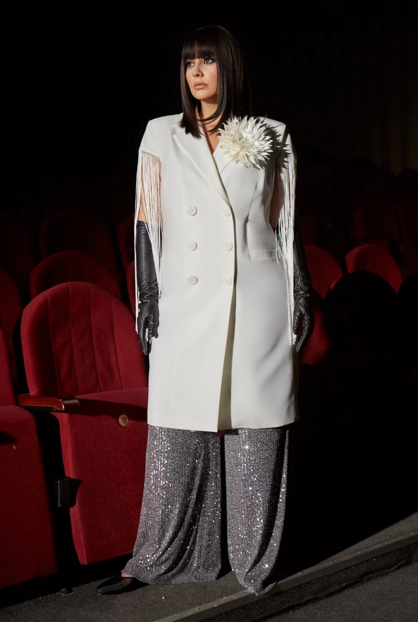 Философия коллекции заключается в яркости и проявленности, в кокетливости и самовыражении. Образы эстетичные, смелые, и в то же время такие узнаваемые. Вас ждет безграничное количество бахромы, блеска, меха, роскоши и золота.