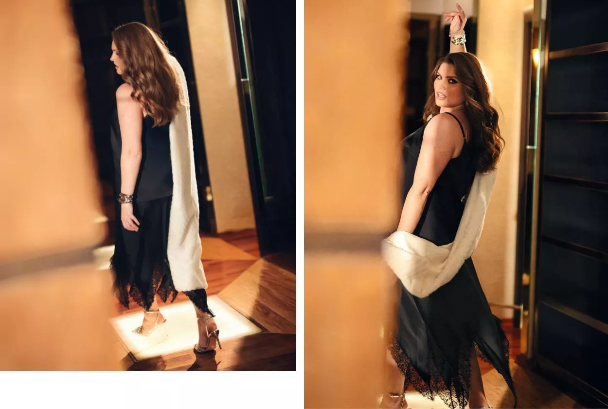 Бархат и кружево — диалог тактильности и тайны. Бархат — это глубина пережитого, тепло, которое мы несем с собой. Кружево — это намек, недоговоренность, интригующее предвкушение того, что ждет впереди.