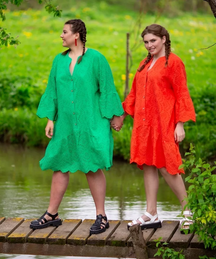 Оранжевое платье на пуговицах с перфорацией