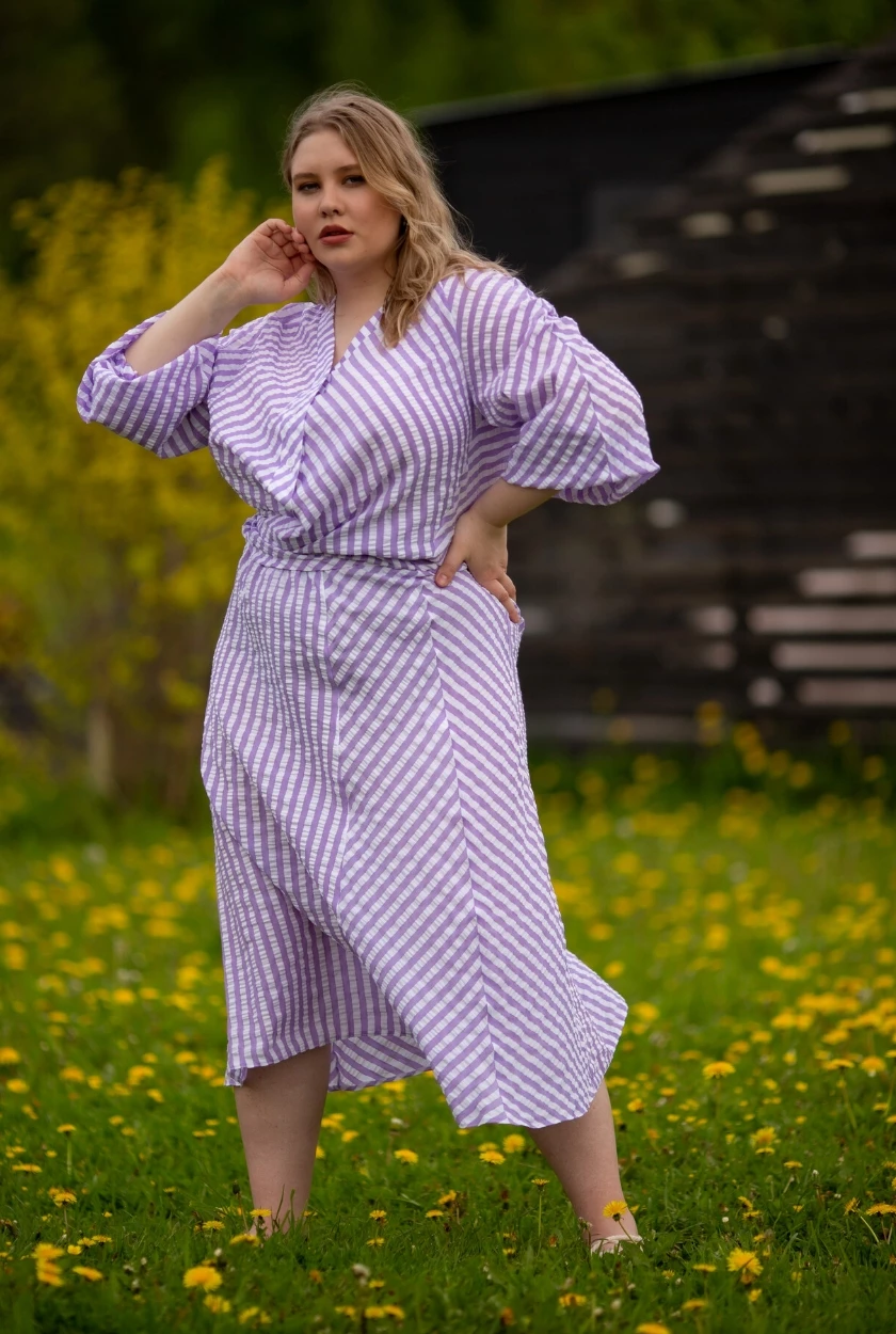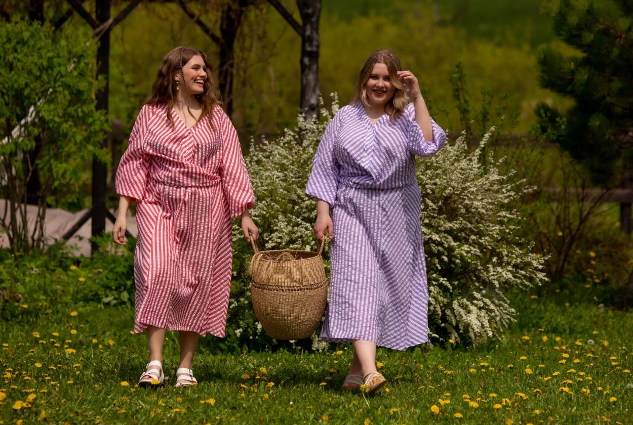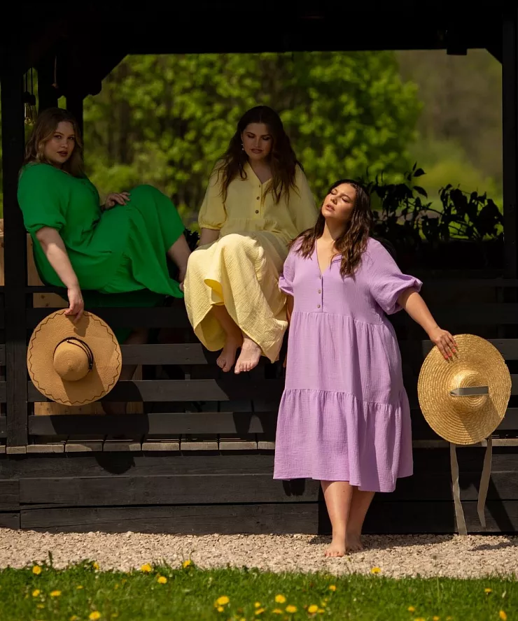 Это был долгий день: мы выехали из Москвы около 4 утра и вернулись только в 11 вечера. Мы приехали на ферму в Калужской области, где в 6 утра нужно было вести себя тихо, чтобы не разбудить местных жителей и отдыхающих. А еще на территории было много животных: страусы, гуси, лошади, кошки, собаки, кролики, коровы. И иногда они отлично вписывались в кадр, а иногда немного мешали. Плюс нас сопровождала непонятная погода: то солнце, то облака (а те, кто когда-либо снимал, знают, что это сильно влияет на свет в кадре). Но в итоге всё получилось как нельзя лучше: мы отсняли несколько десятков образов, получили живые летние кадры и зарядились позитивом на несколько дней!
