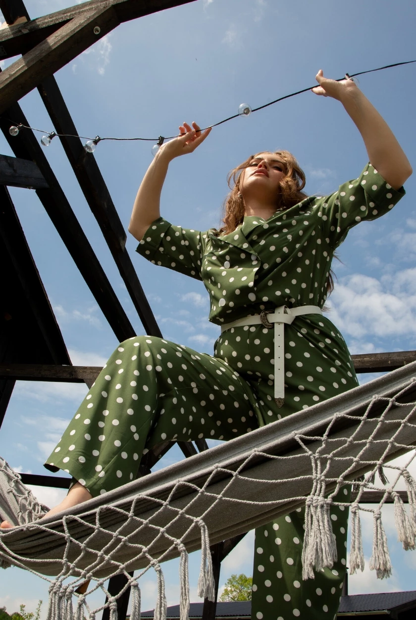 Комбинезон цвета хаки и принтом горох