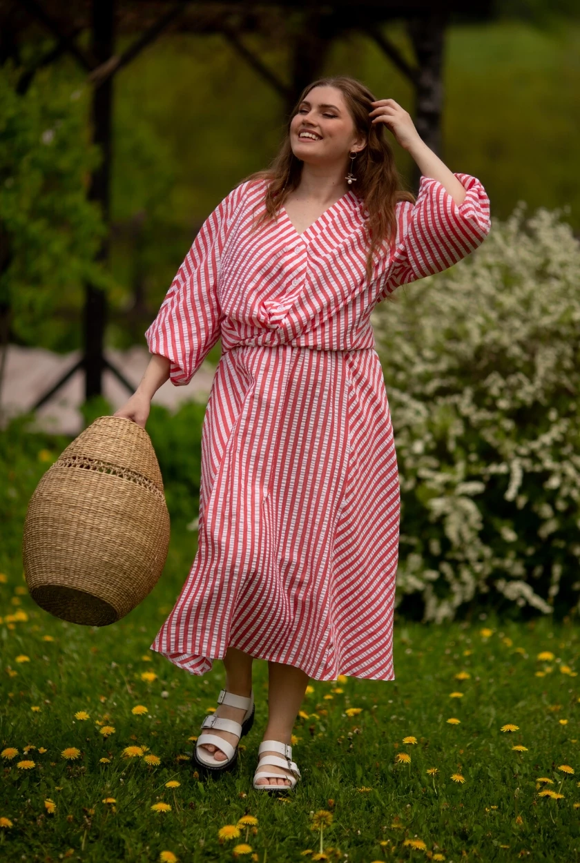 Юбка и блузка с крэш эффектом полосатым принтом