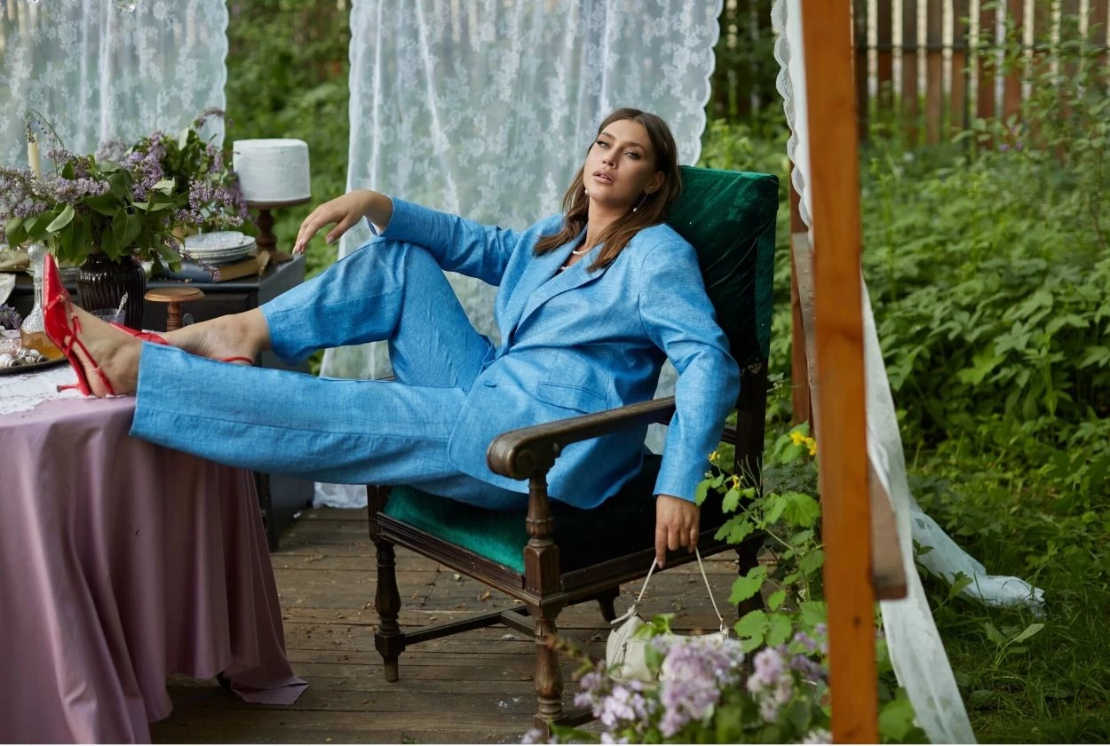 Синий жакет с двумя шлицами из 100% льна