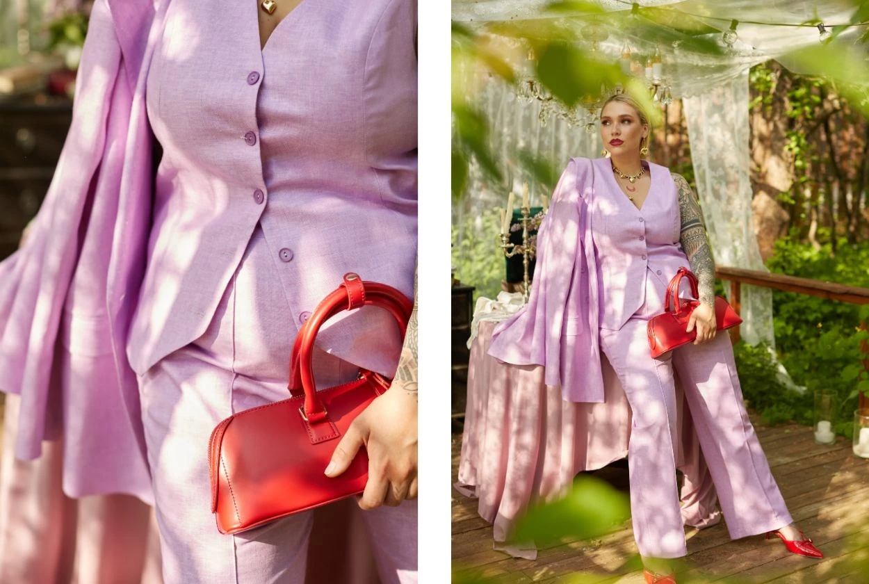 Сиреневый двубортный жакет из 100% льна