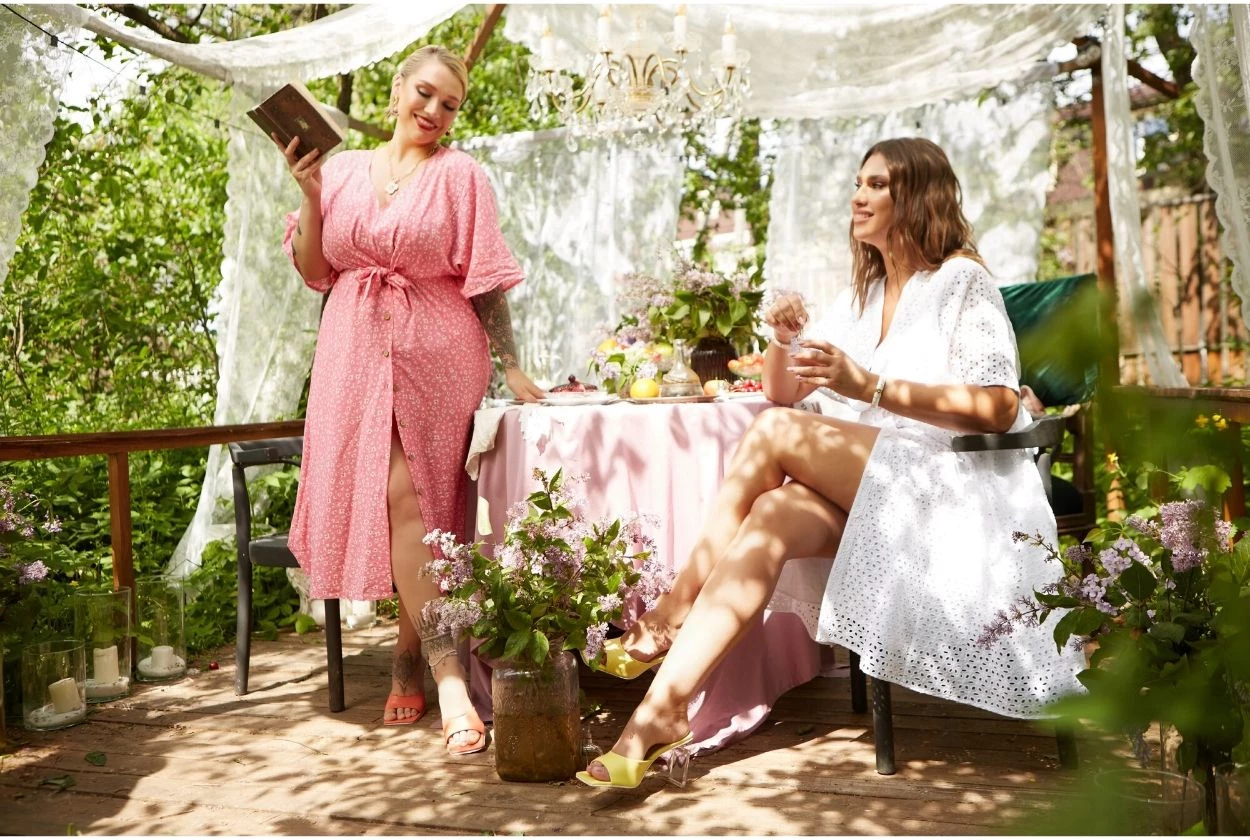 Мы хотели создать не просто красочные фото, но и передать атмосферу пикника, который, будто наспех, мы устроили на заднем дворе бабушкиного дома. В объятиях солнечных лучей, пробивающихся сквозь тонкие ткани, в блеске декоративной люстры, в улыбках девушек – во всем кроется смысл.