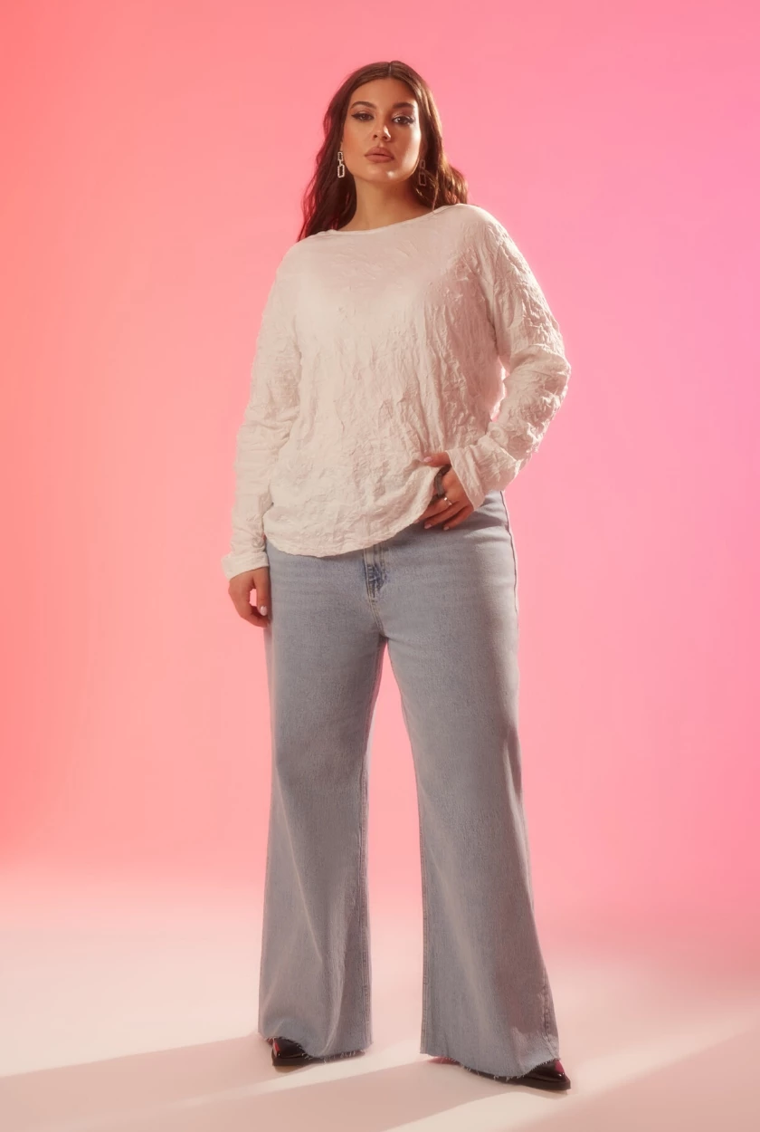 Белый лонгслив regular fit с эффектом жатки