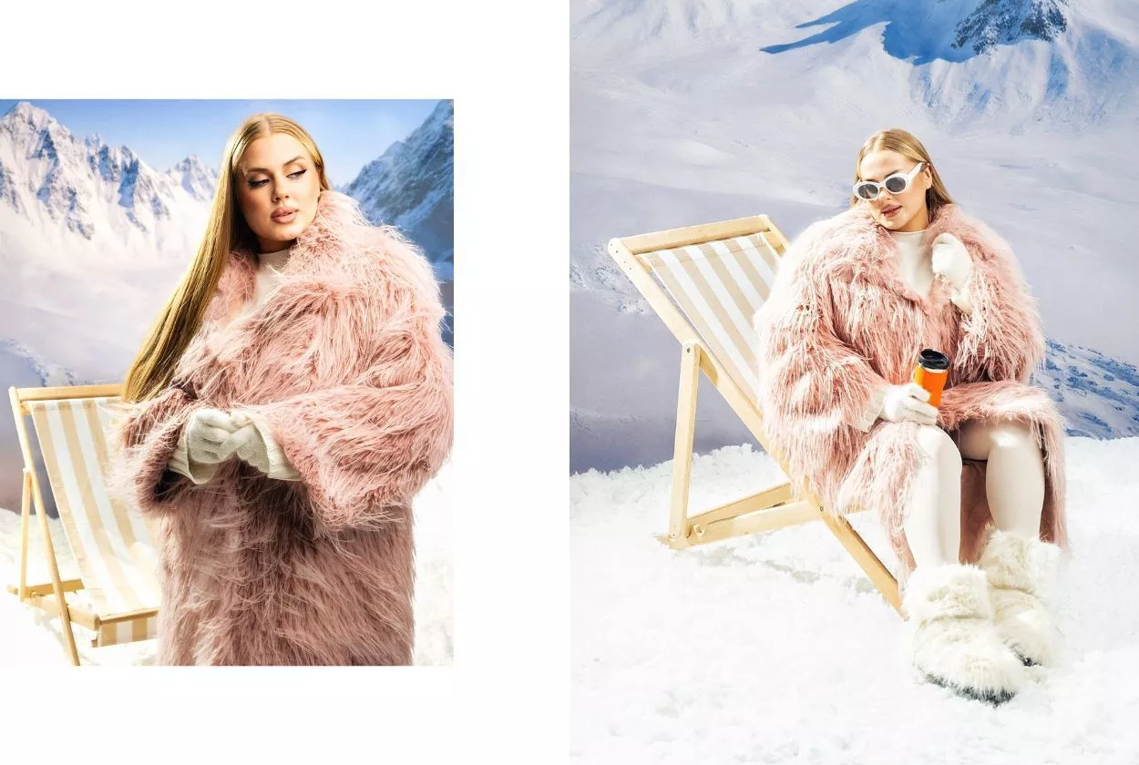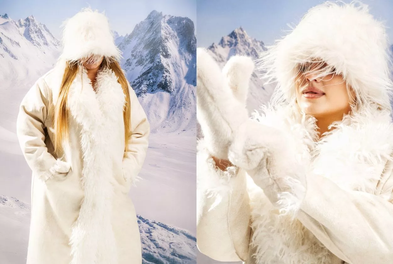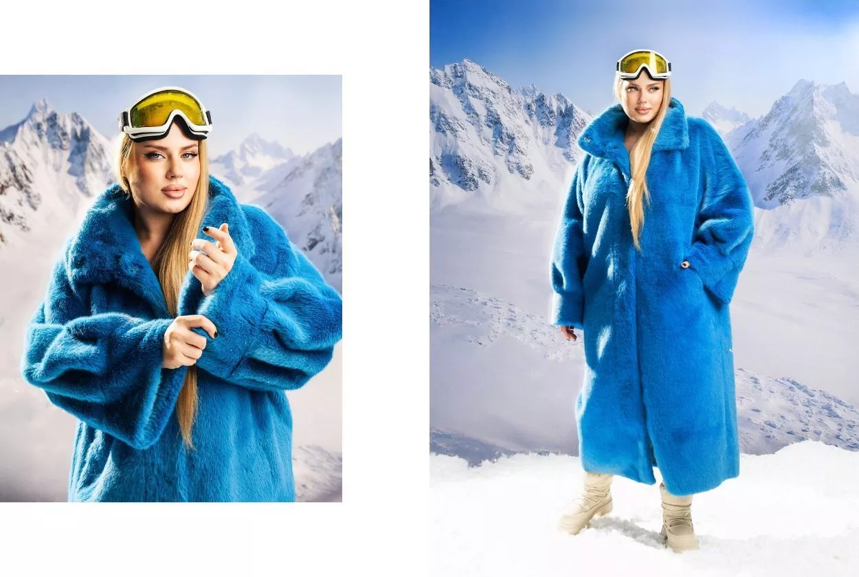 Высокогорный свет, прозрачный и яркий, превращает снег в миллионы сверкающих алмазов. В этом мерцании наша модель Люба — как воплощение силы и изящества. Она показывает роскошные дубленки с мягким силуэтом, но четкими линиями, кутается в мягкий трикотаж, обволакивающий нежностью, яркие шубы и теплые пуховики, стильные головные уборы, в которых можно встретить и буран, и вечерний выход, перчатки и вырезки с выразительными деталями — потому что даже в холоде важно оставаться утонченной.