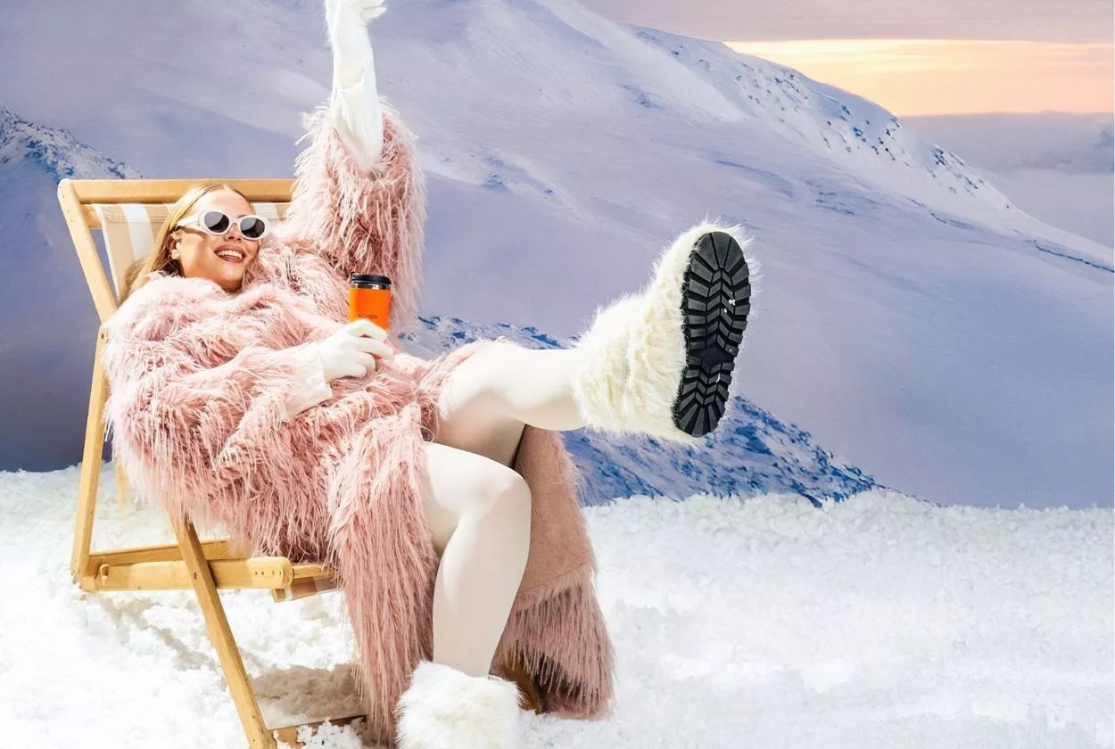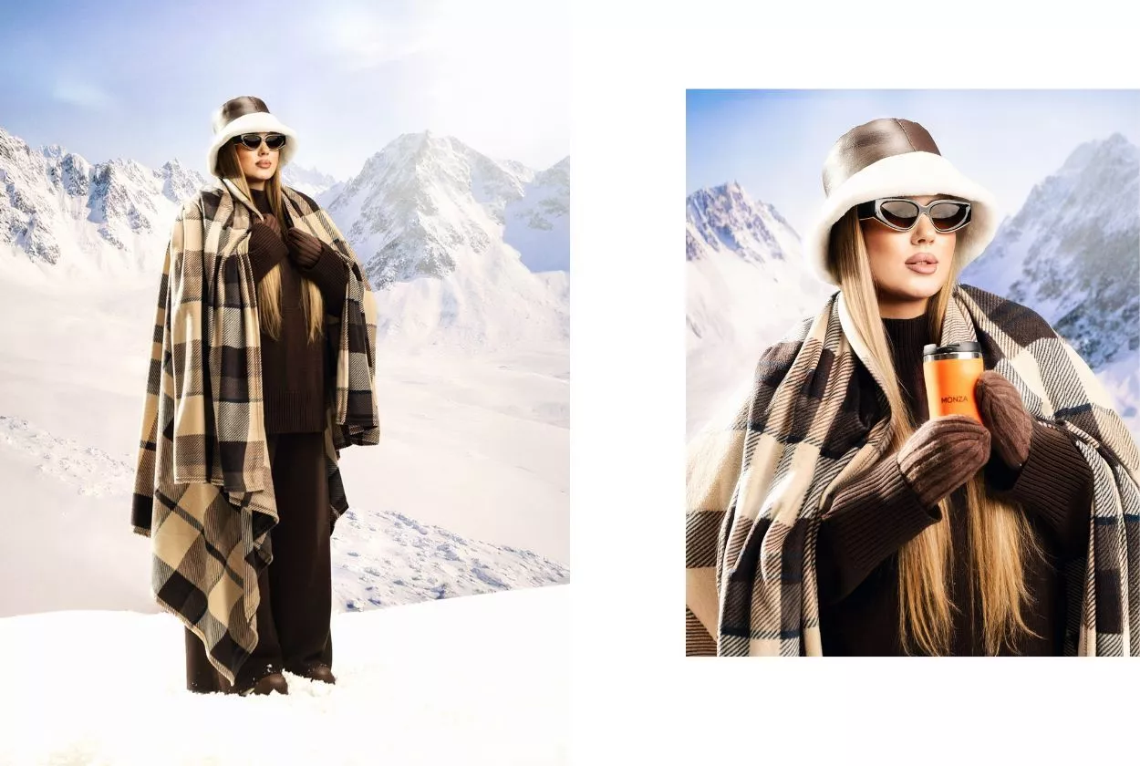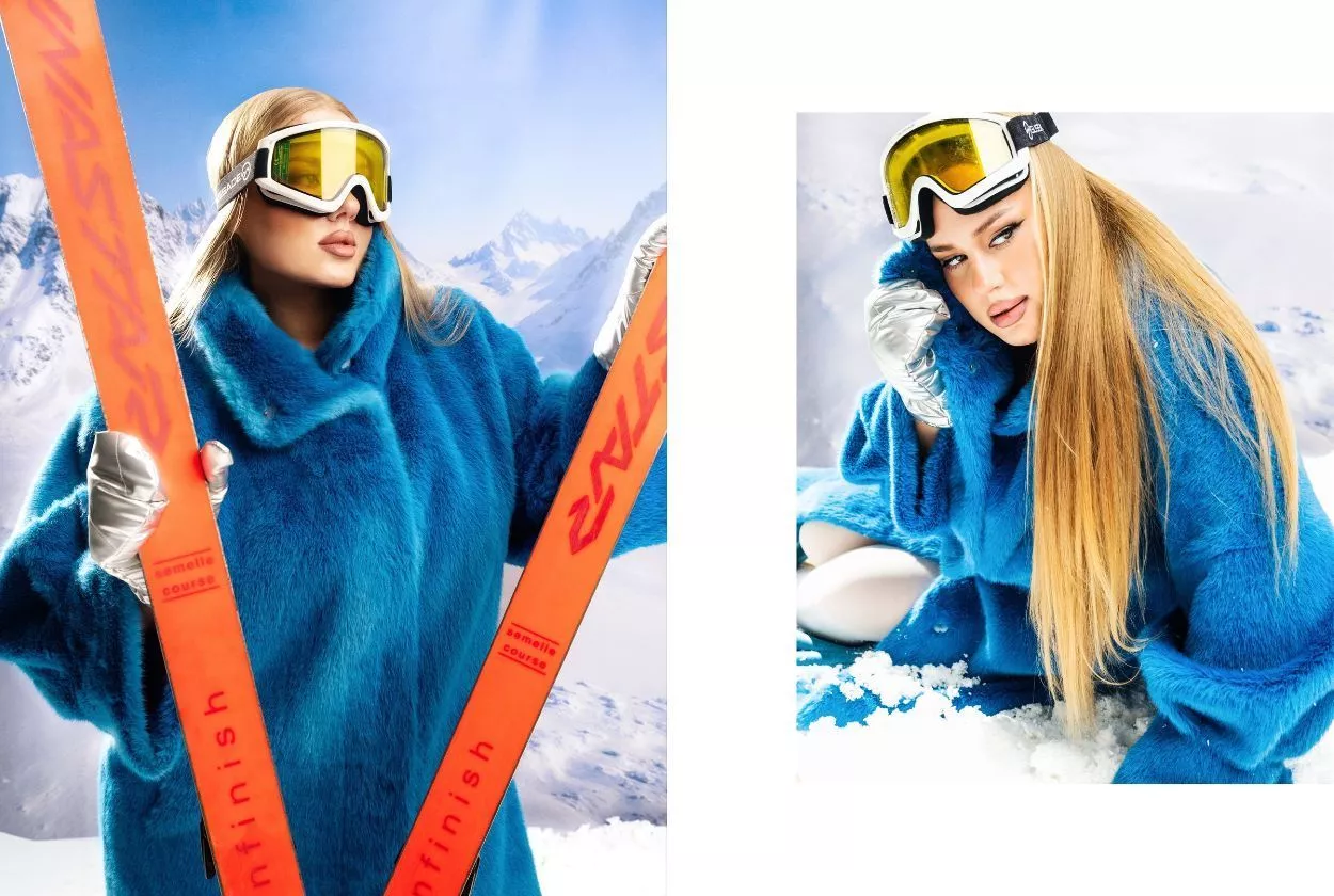 Зима и солнце встретились на вершине заснеженных холмов, чтобы продемонстрировать зимнюю коллекцию одежды by Monza.