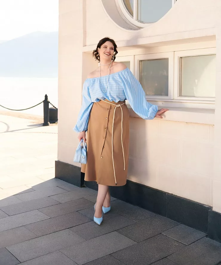 Блузка с открытыми плечами в морском стиле