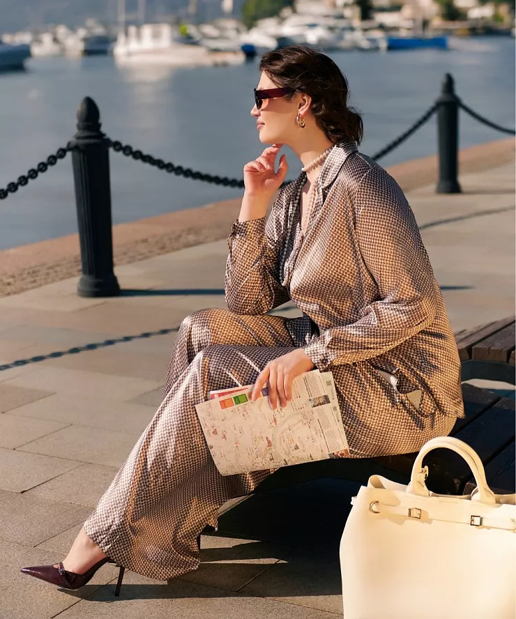 Широкие брюки с коричневым принтом
