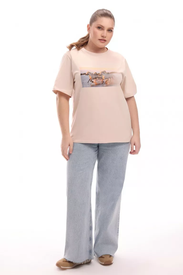 Базовая бежевая футболка с принтом