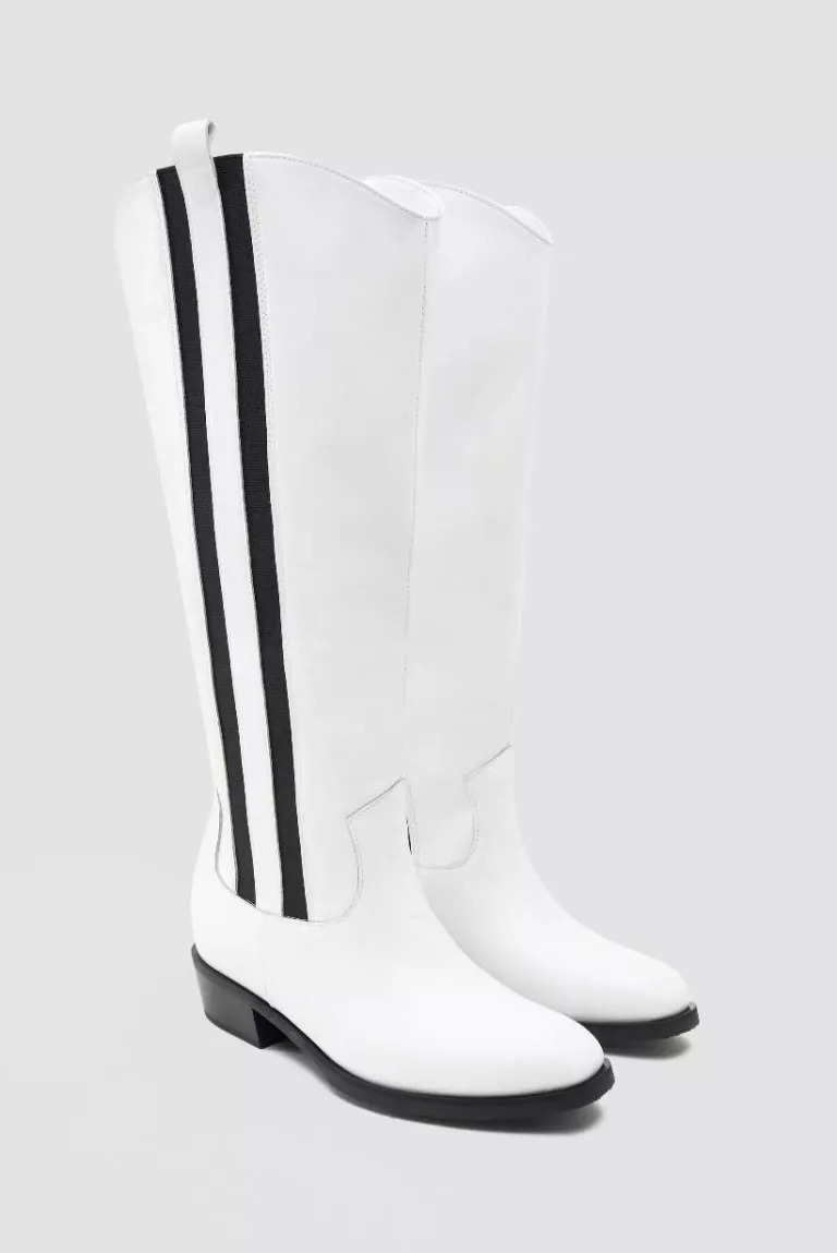Сапоги в жокейском стиле из кожи, с эластичными вставками в районе голенища, на небольшом каблуке, с молнией. Мыс слегка тупой. Стелька из текстиля. Застежка молния. Полнота увеличена.