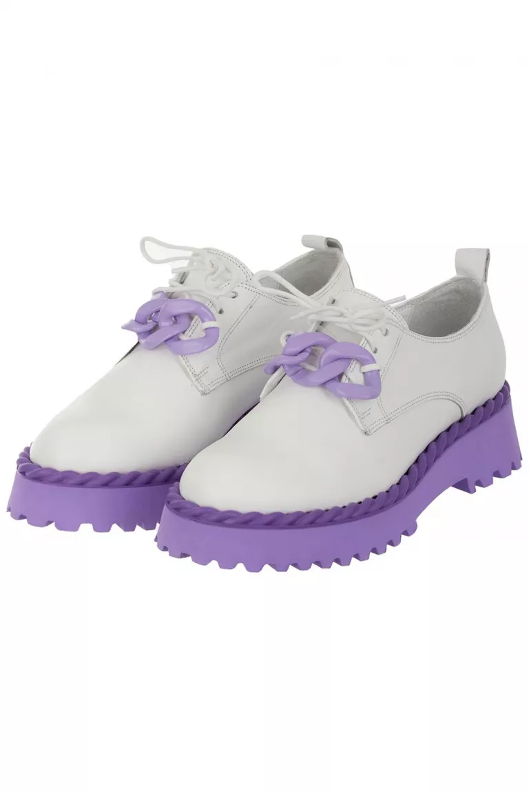 Описание: Полуботинки Неон на литой объемной подошве контрастного цвета. Верх полуботинок на шнурке. Стелька из кожи. Дополнены цепочкой.