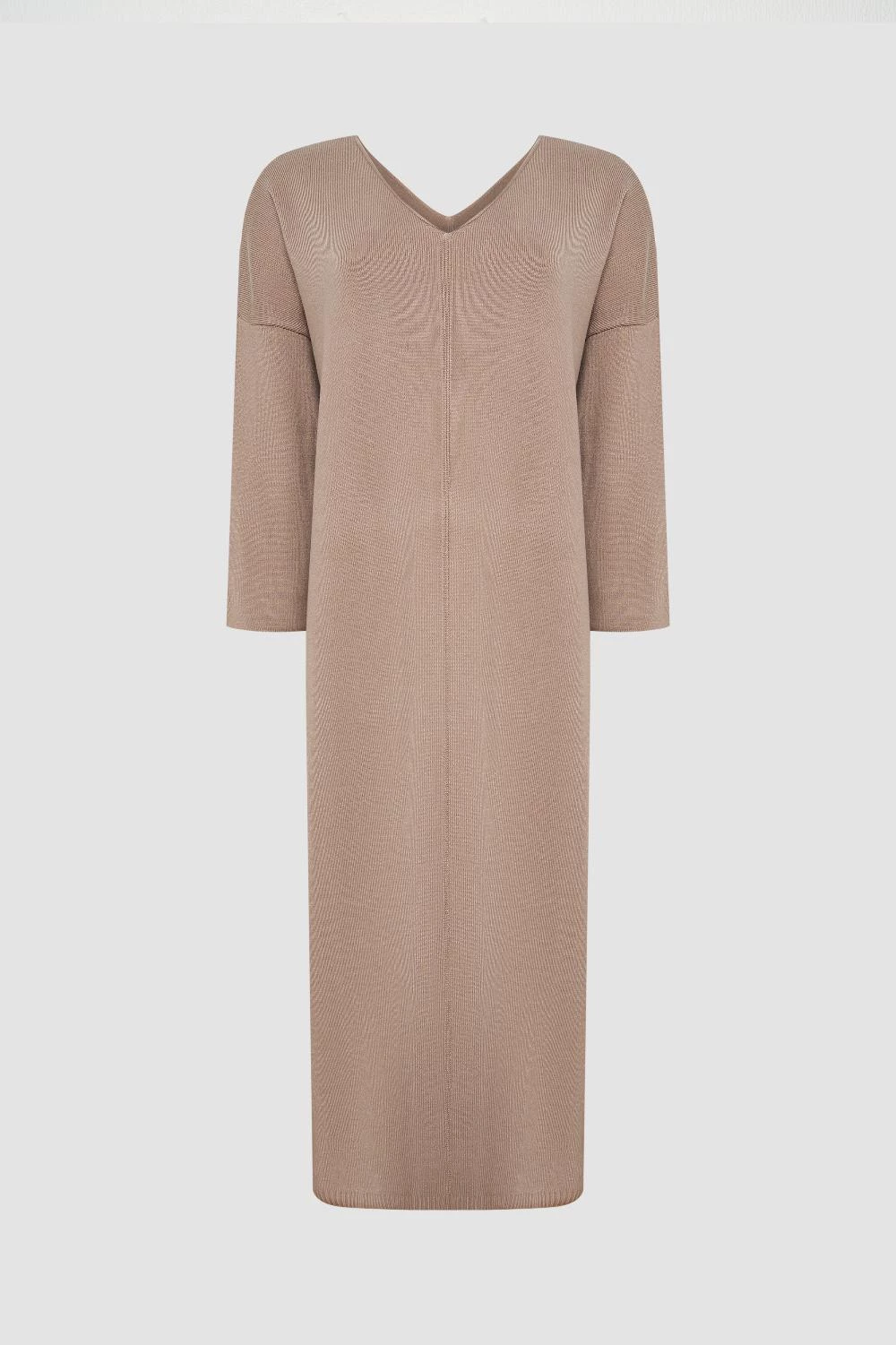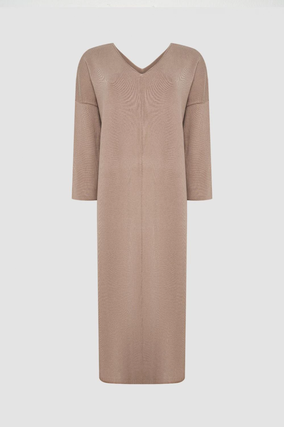 Бежевое платье свитер из смесовой шерсти с кашемиром