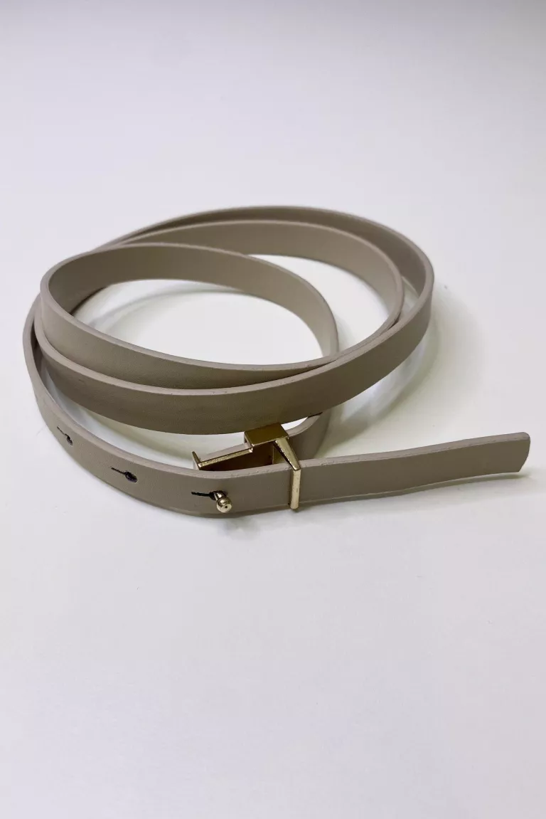 Описание: Ремень из эко-кожи Каре односторонний с треугольной металлической пряжкой. Ширина 1,5 см, длина 125 см.