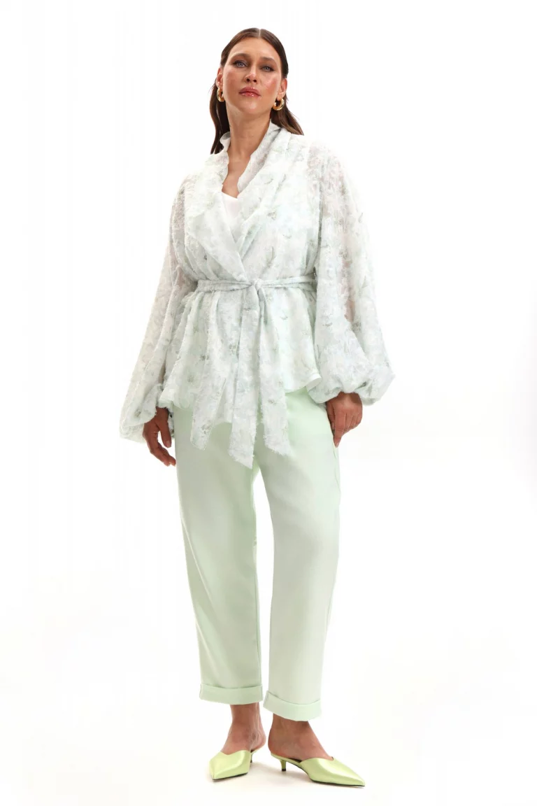 Блузка кимоно из салатовой фактурной ткани