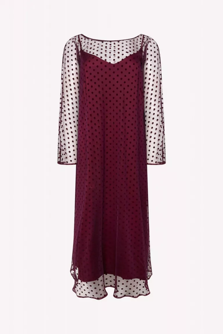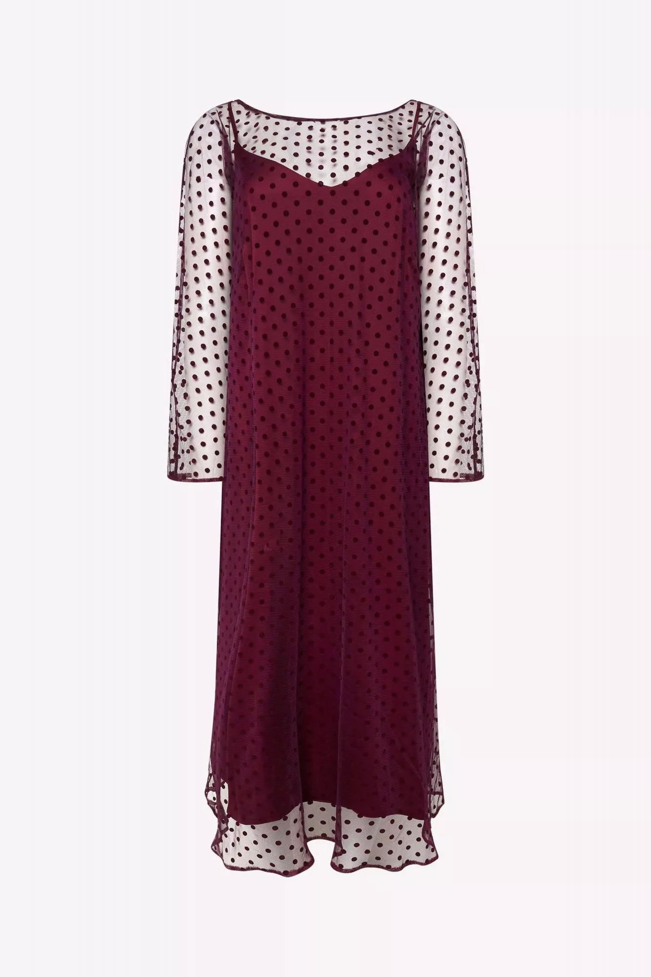 Описание: Платье Дитрих двуслойное, прямого силуэта, из смесовой вискозы с нижним сарафаном на бретелях. Длина миди. Нижний сарафан с в бельевом стиле, с вытачками на груди, центральным швом на спинке и разрезом. Верхнее платье цельнокроеное, из органзы в горошек, с «V»-образным вырезом и центральным швом на спинке. Рукав 3/4, пройма широкая. Комплектуется тканевым поясом.