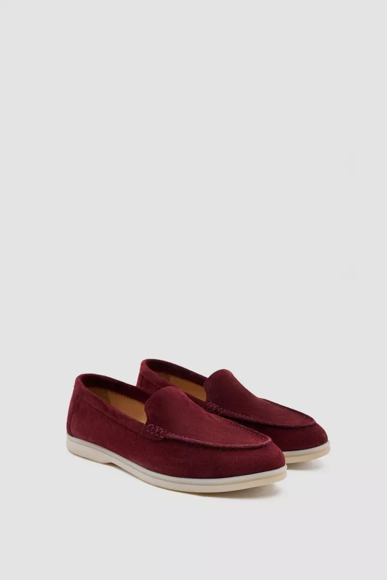 Бордовые замшевые венецианские лоферы с увеличенной полнотой